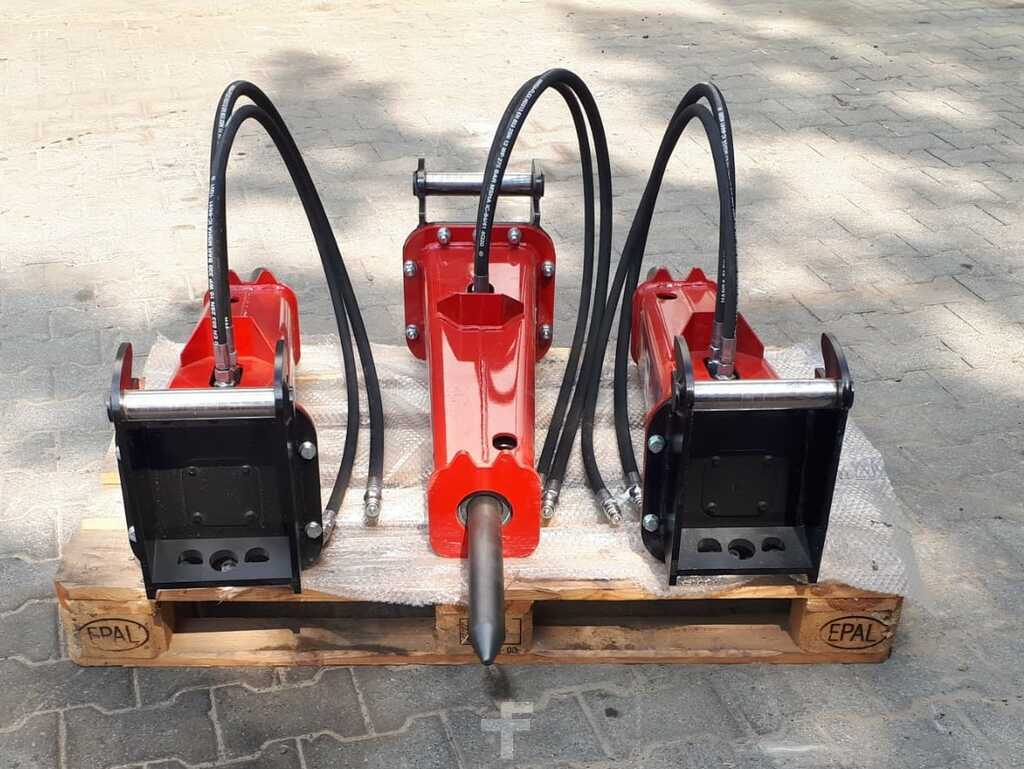 inkl. Kopfplatte MS03, Spitzmeißel, Hydraulikschläuche mit Standard-Kupplungen, Fettpresse mit Meißelfett, ca. 180kg, 800-1200 Schläge/min, 30-50L/min, 80-120 bar, 240-360J Schlagenergie, 53,7mm Meißeldurchmesser, Trägergerät: 2,2 - 3,2t, TB225, TB325R, TB228, TB230, PC22, PC26, PC28, KX027-4, KX030-4, U27-4, E26, E27