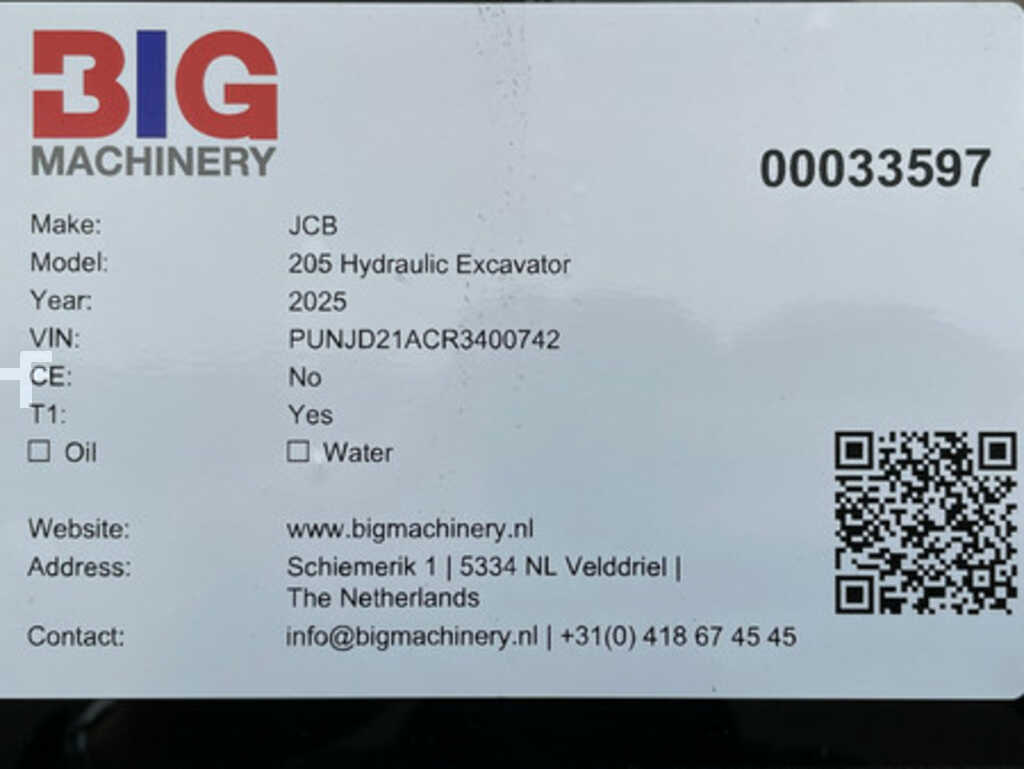 New JCB 205 Crawler Excavator – 2025 | For Sale at BIG Machinery. New and unused JCB 205 crawler excavator available from stock at BIG Machinery in the Netherlands. This 2025 model is powered by a Cummins 6BT5.9C engine delivering 104 kW and has only...