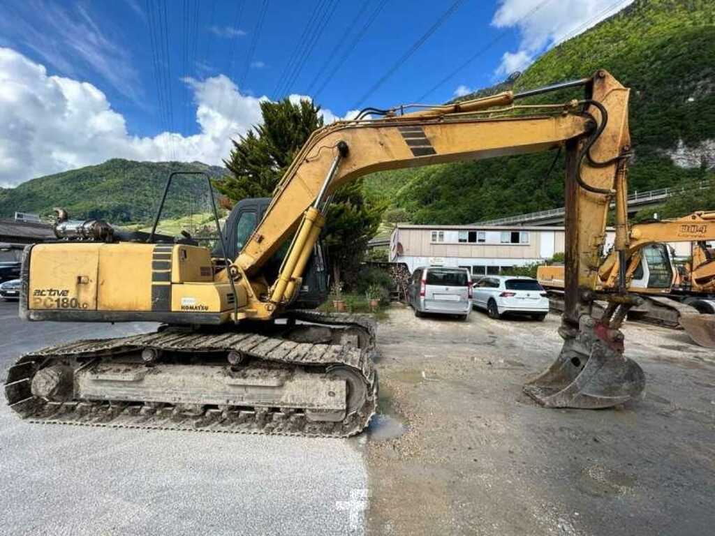 Cette pelle sur chenilles de la marque Komatsu est le modèle PC180LC-6K de 2000.