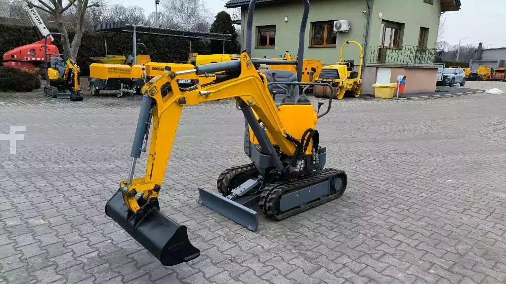 Minikoparka YANMAR SV 08 – 1A(S) Rok produkcji 2019 - (sn:AH152) W koparce usunięto luzy ramienia roboczego 1659 mth, Moc 10 KM, silnik YANMAR, masa własna 960 kg, rozciągane gąsienice, dodatkowa hydraulika, łyżka skarpowa 800 mm