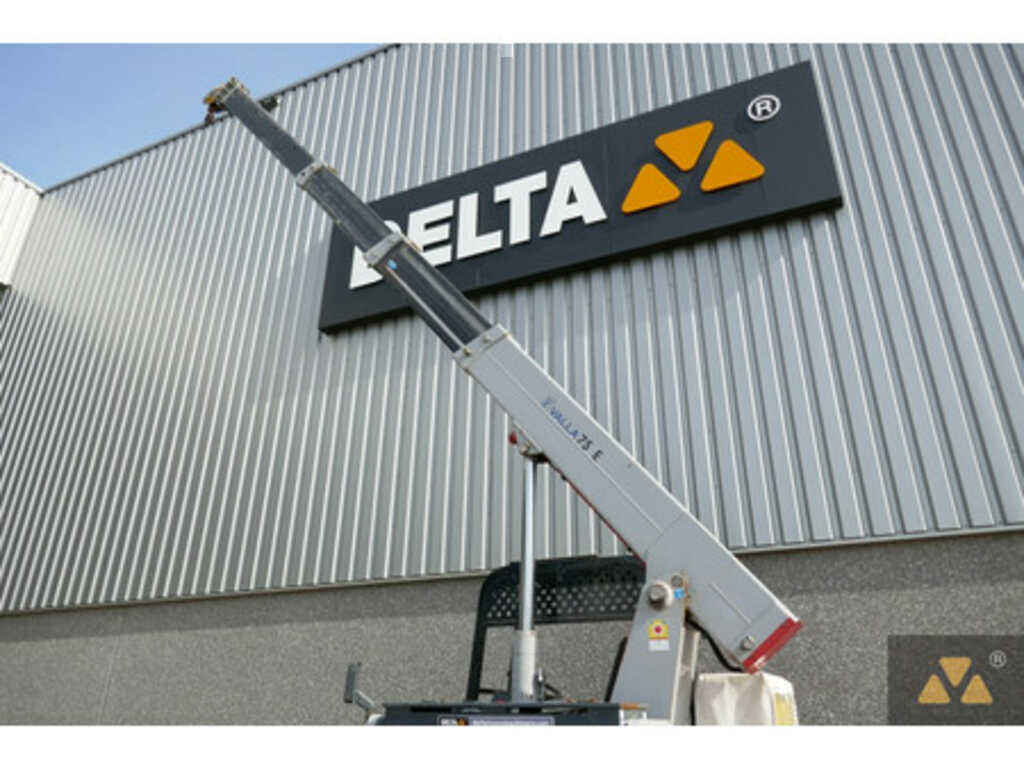 (Maschinelle Übersetzung): Kompakter Industriekran Manitex-Valla 75E, nur 252 Stunden pro Meter! Max. Hubkraft 7.500 kg, max. Arbeitshöhe 7,40 Mtr, max. Arbeitsradius 5,40 Mtr, max. Tragkraft bei max. Höhe 1.900 kg, 4-teiliger Teleskopausleger, LMI, emissionsfrei...