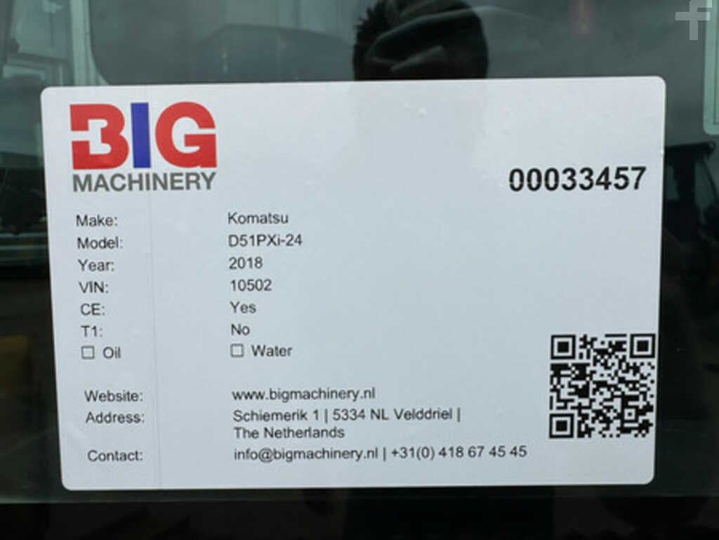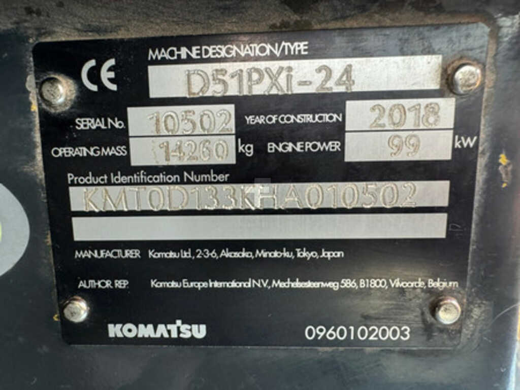 Used Komatsu D51PXi-24 Dozer – For Sale at BIG Machinery. This Komatsu D51PXi-24 dozer is available for sale at BIG Machinery in the Netherlands. The machine is CE certified and equipped with a PAT blade with a width of 3,330 mm and an air-conditioned...