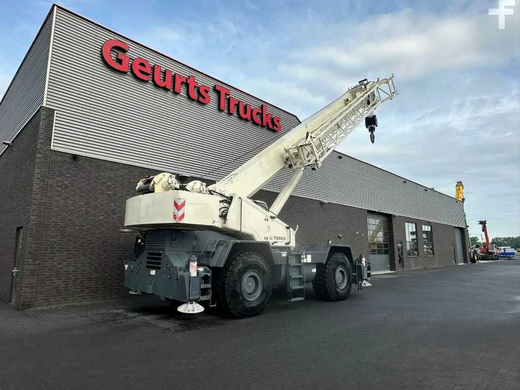 Type: Ruw-terreinkraan Aandrijving: Wiel Mast: telescoop (4 delen) Mastlengte: 56,08 m Hefcapaciteit: 110.000 kg Merk opbouw: TEREX TR110 QUADSTAR 1100 + JIB Algemene staat: zeer goed Technische staat: zeer goed Optische staat: zeer goed