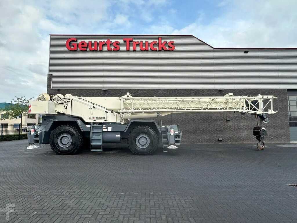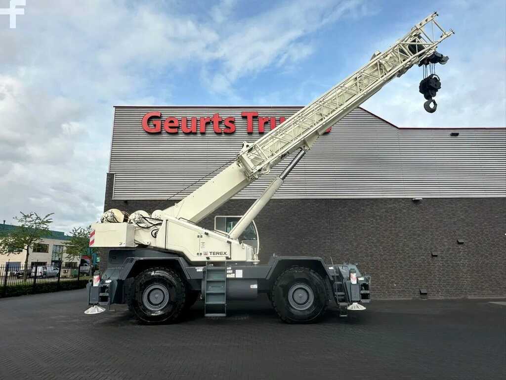 Type: Rough terrain crane Drive: Wheel Mast: telescopic (4 parts) Mast length: 56,08 m Lifting capacity: 110.000 kg Make of bodywork: TEREX TR110 QUADSTAR 1100 + JIB General condition: very good Technical condition: very good Visual appearance: very good