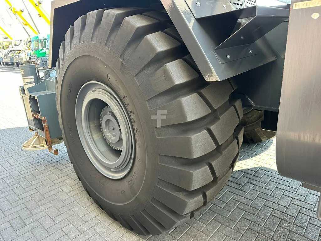 ENGINE RATED POWER 300HP/2200RPM 6X3 POWERSHIFT TRANSMISSION WITH TORQUE CONVERTER SELECTABLE FOUR-WHEEL DRIVE (LOW RANGE) RIGID MOUNTED FRONT AXLE OSCILLATING MOUNTED REAR AXLE AUTOMATIC REAR AXLES OSCILLATION LOCK WHEN SUPERSTRUCTURE IS SWUNG BY 10` FROM CENTERLINE IN EITHER DIRECTION PNEUMATIC SERVICE BREKES