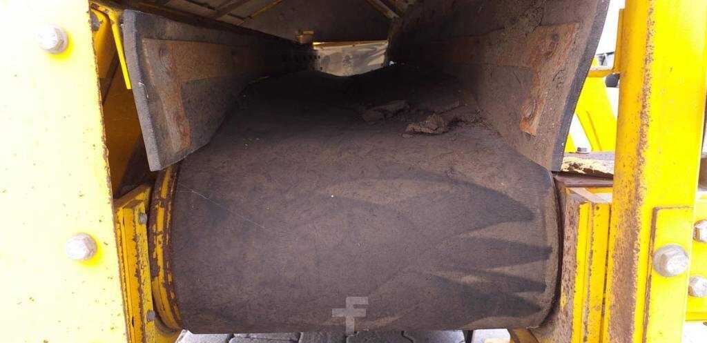 Die rotierende Kehrwelle transportiert den überschüssigen Schotter auf das Querband und leitet ihn wahlweise nach links oder rechts neben das Gleis Alle Steuerfunktionen erfolgen aus der Baggerkabine