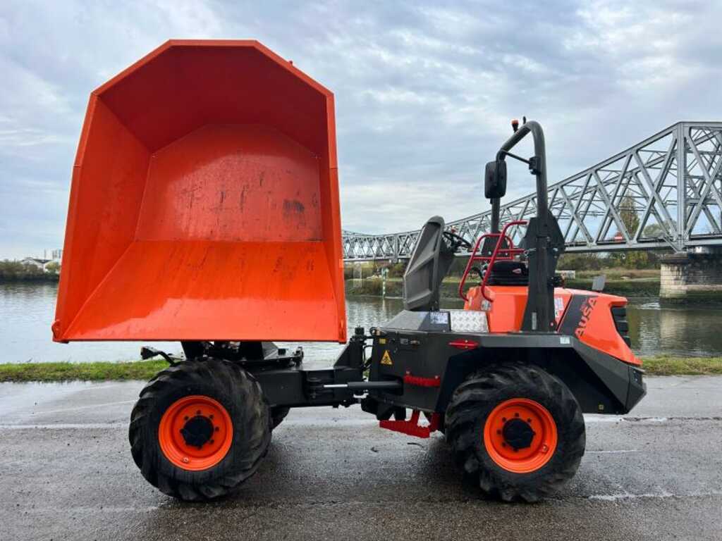 Dumping and 180° rotation Permanent 4-wheel drive Load: 6000 kg Water: 1.665L To the brim: 2.455L In dome: 3.154L Electronically controlled hydrostatic transmission Engine: Deutz stage V 74.29 HP / 55.4 kW ROPS folds backwards Dimension start wizard Negative brake Panoramic camera on the dumpster Digital screen Self-locking differential on both axles