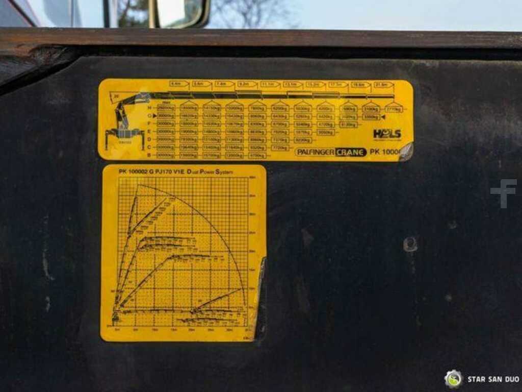 VOLVO FH 520 8x2 PALFINGER PK 100002 HDS Fly Jib Crane ID No.: 958 ________________________________________ Vehicle specifications: • Model: Volvo FH 520 • VIN: YV2AS50E762632380 • Drive: 8x2 • Year of manufacture: 2007 • First registration: 19.09.2007 • Engine power: 520 HP • Emission standard: Euro 4 • Mileage: 387,802 km • Transmission: manual ________________________________________ Crane specifications: • Palfinger PK 100002 • 8 hydraulic segments • Fly Jib – 6 segments • Radio control ________________________________________ Technical parameters: • Curb weight: 28,675 kg • Payload: 3,325 kg • Gross Vehicle Weight (GVW) in Poland: 32,000 kg ________________________________________ Cargo space dimensions: • Length: — • Width: — • Height: — ________________________________________ Overall vehicle dimensions: • Overall length: 9,100 mm • Overall width: 2,550 mm • Overall height: 3,900 mm ________________________________________ Wheelbase: • Axle 1-2: 2,000 mm • Axle 2-3: 2,670 mm • Axle 3-4: 1,370 mm • Last axle: liftable [P] ________________________________________ Front / rear suspension: • ________________________________________ Additional equipment: • ABS • Central locking • Electric windows • Immobilizer • On-board computer • Factory radio • Tachograph • Power steering • Air conditioning ________________________________________ Additional options: • — ________________________________________ Services: • Authorized service for cranes from FASSI, HIAB, EFFER, and others • Repairs of all brands of cranes and trucks • Spare parts available ________________________________________ Technical inspections and certificates: • We are UDT-approved • We conduct inspections and coordinate documentation with UDT • We conduct initial vehicle inspections at Diagnostic Stations ________________________________________ Warranty and preparation for operation: • Possibility to purchase a technical warranty for an additional fee • Professional preparation of the vehicle and crane for operation ________________________________________ Financing: We offer assistance in arranging a lease or loan for the purchase of a vehicle – ask us for details. ________________________________________ Location: Our headquarters is located in Starachowice. We invite you to inspect the vehicle in person and take a test drive. ________________________________________ Additional Information: Why choose our offer? • Experience and professionalism in 4x4, 6x6, 8x8 trucks, and vehicles with HDS • Comprehensive service: purchase, financing, service • Each vehicle undergoes a detailed inspection before sale ________________________________________ You can find more offers on our sales platform: ... ________________________________________ Don't wait – contact us today and schedule a vehicle viewing! ________________________________________ Legal Informati