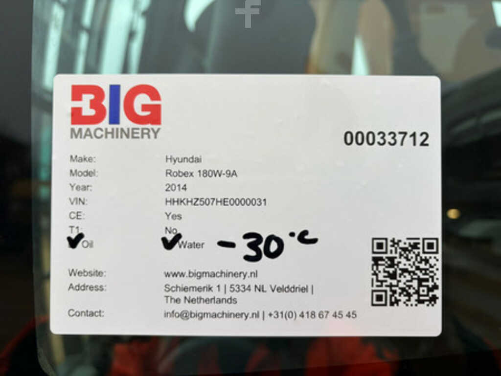 Used Hyundai Robex 180W-9A Wheeled Excavator – For Sale at BIG Machinery. This Hyundai Robex 180W-9A wheeled excavator is now available for sale at BIG Machinery in the Netherlands. With 5.272 operating hours, this machine is in good working condition....
