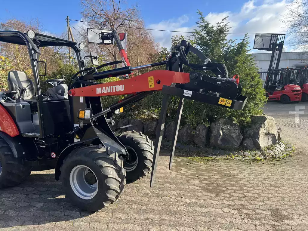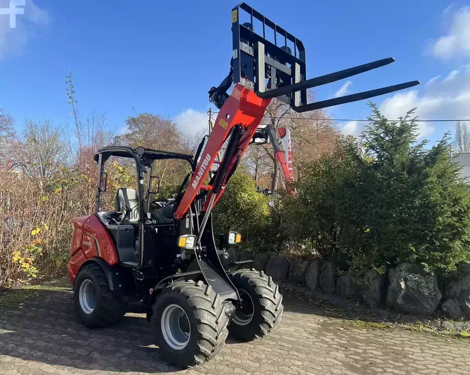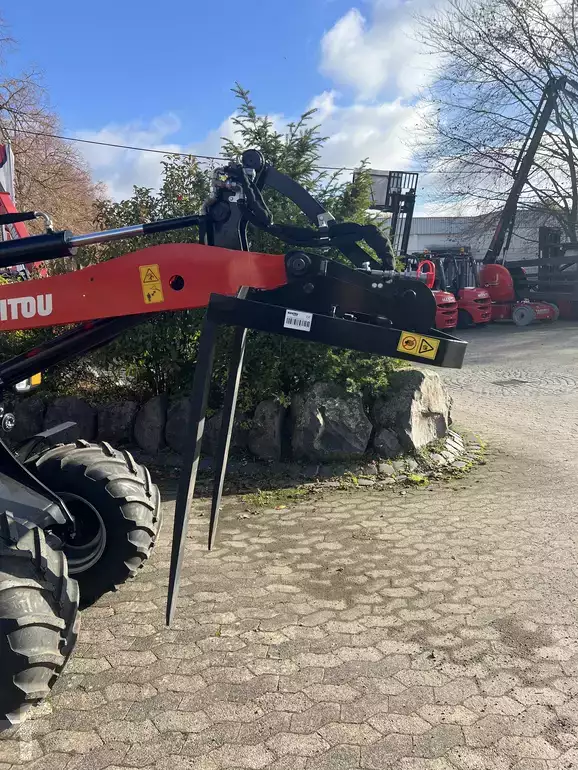 Accesorios ✅Gerätedaten ►Bauart: Hoflader | Knicklader ►Hersteller: Manitou ►Typ: MLA 3-25 H ►Baujahr: 2024 ►Zustand: Vorführmaschine ✅Leistung & Ausstattung ►Kipplast (Schaufel): 1.270 kg ►Tragkraft (Gabeln): 965 kg ►Schaufeldrehpunkt: 2.836 mm ►Antrieb: Diesel ►Motor: Perkins 403J-17 | Stage V | 24,7 PS ►Getriebe: Hydrostatisch ►Fahrgeschwindigkeit: 20 km/h (2-Gang-System) ►Hydraulik: 30 l/min | 207 bar ►Gesamtbreite: 1.100 mm (ohne Schaufel) ►Bodenfreiheit: 320 mm ►Bedienung: Joystick ►Kabine: 4POST Fahrerschutzdach (ROPS/FOPS) ►Aufnahme: 4-Punkt Hakenaufnahme ►Bereifung: 31X15,5 15 mit Schmutzfänger ►Beleuchtung: StVZO-Beleuchtung und LED-Scheinwerfer ►Schwimmstellung: Ja, Schaufel ►Sonstiges: Handgas | Zugmaul ►Anbaugerät 1: Erdschaufel ►Anbaugerät 2: Gabelträger mit Gabelzinken ✅Finanzierung: Möglich, zu Top-Konditionen über die Herstellerbank.