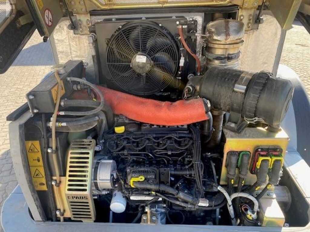 Equipamiento adicional: cargador basculante, neumáticos 405/70-20, amortiguación de vibraciones o.F., opciones: báscula, ventilación protectora, etc., horquilla de carga, 3º hidr. Circuito de control, acoplamiento rápido, baliza giratoria, equipamiento especial, retroexcavadora estándar