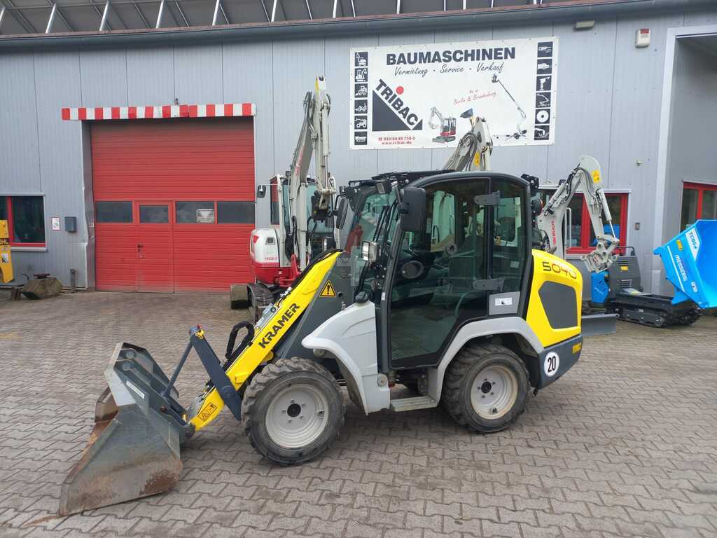 KramerAllrad 5040, 28,5 kW Yanmar-Dieselmotor S5/T4F, mit Niedrigkabine und Heizung, 20km/h, Allradlenkung, Bereifung Mitas 27x10.5-15 BKT SPHD ET0, Arbeitsscheinwerfer vorn und hinten, Batterietrennschalter, Druckentlastung 3. Steuerkreis, Schaufel und Palettengabel 800mm