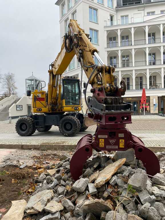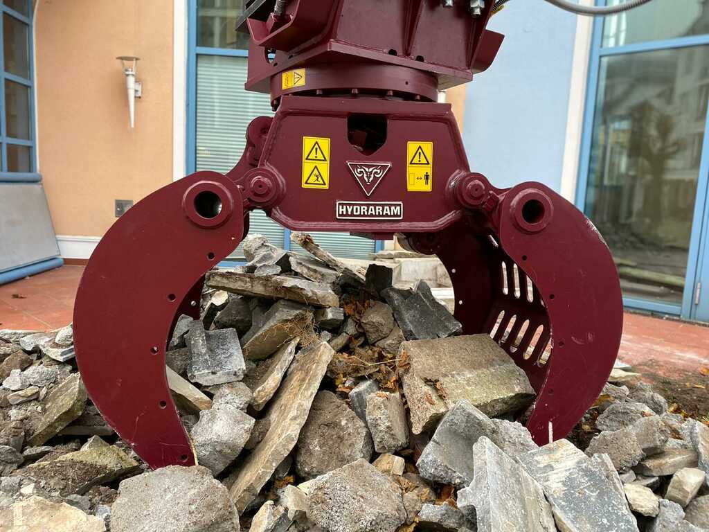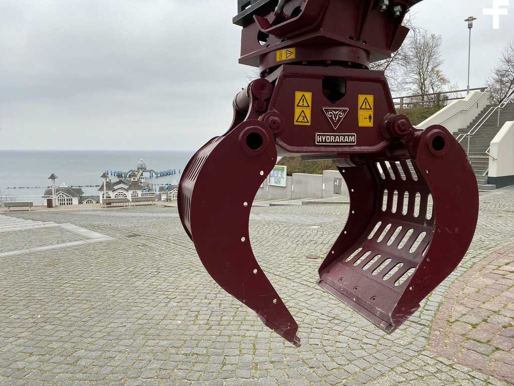 Abbruch- und Sortiergreifer HDG-110R für Trägergewicht 14-22 to, inkl. Kopfplatte MS20 und Hydraulikschläuche, Highlights: geringes Gewicht, niedrige Bauhöhe, wendig, Schalen aus gebogenen und gepressten Hardox®-platten, wechselbare Unterschraubmesser,. Grundrahmen in unübertroffener Stärke und Steifigkeit, Zylinder mit Enddämpfung für extrem hohe Schließkräfte, ruhende Zylinder