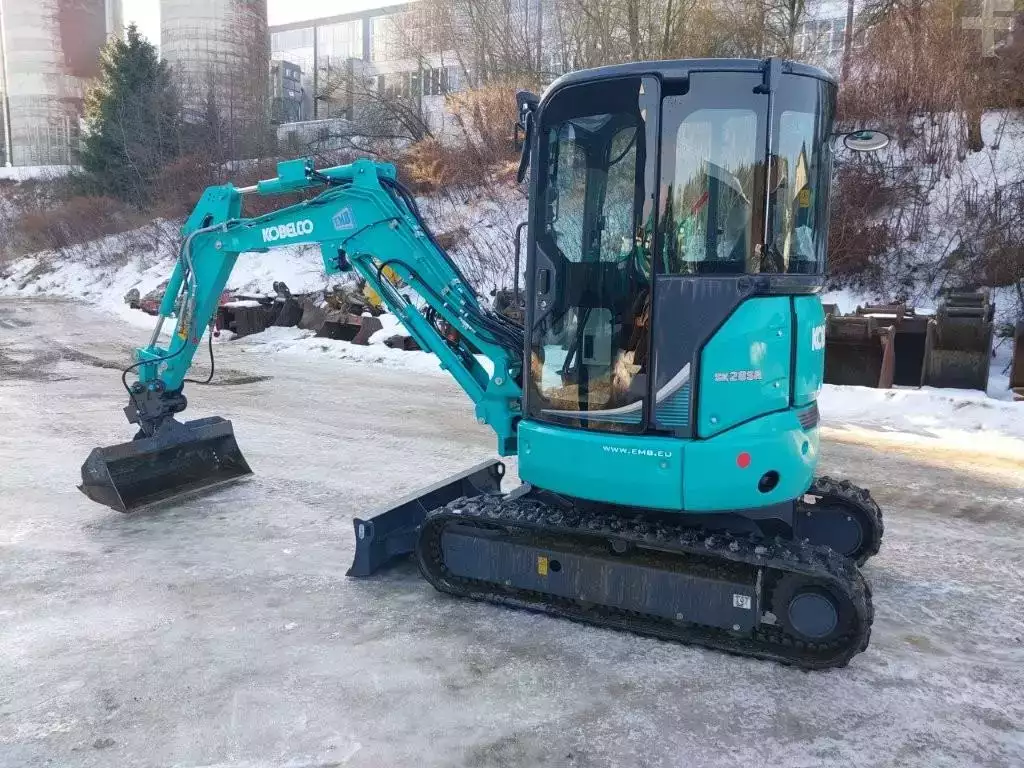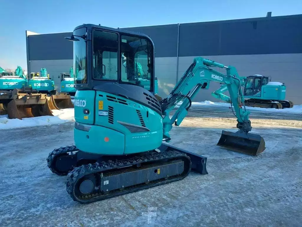 Miniexcavadora absolutamente nueva. El acoplamiento rápido y el cucharón no están incluidos (disponibles como opción) Con válvula de seguridad para cilindros de pluma y brazo. Gancho de carga Dispositivo de advertencia de sobrecarga