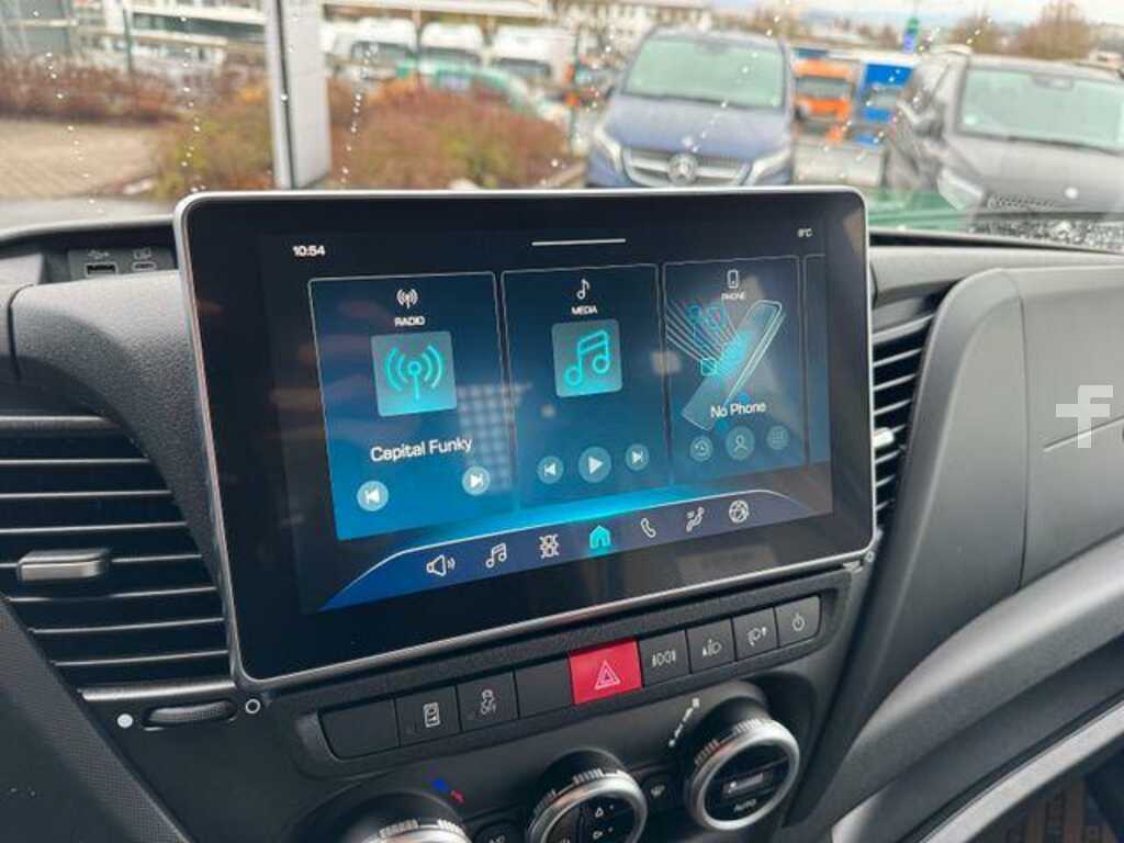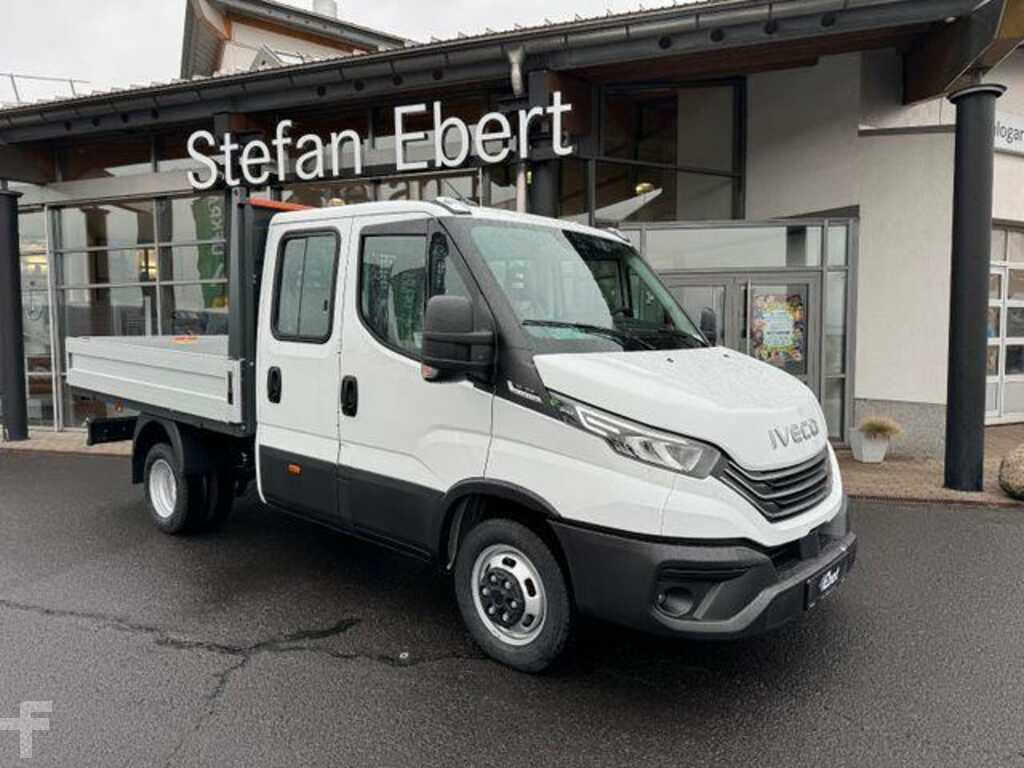 Motorisierung 3,0 l D EVIe 152kW (207PS), Getriebeschaltung HI-MATIC 8-Gang Automatikgetriebe, Hinterachse Zwillingsbereifung, Radstand 3450 mm, Sicherheitsgurte mit Warnsignal für Fahrer und Beifahrer, Standard-Kopfstützen, Sitzbezüge in Stoff, 4er Sitzbank im Fahrgastraum, Licht- und Regensensor, Einparksensoren hinten, Reifendruck-Überwachungssystem (TPMS), Proaktiver Lenkassistent mit Fahrspurüberwachung (ELK), Notbremsassistent AEBS mit City Brake, Außenspiegel elektrisch verstell- und heizbar, Müdigkeitswarnsystem für den Fahrer (DriverDrowsinessAttentionWarning), Geschwindigkeitsbegrenzer 160 km/h, Verkehrszeichenerkennung mit intelligentem Geschwindigkeitsassistent (ISA), Elektrische Fensterheber für vordere Einstiegstüren, Frontairbags für Fahrer und Beifahrer mit Gurtstraffern, AdBlue Tank 20 Liter unter Fahrerhaus, Kraftstofftank 63 l , Hinterachsübersetzung i 3,29, Komfort-Geräuschdämmung, Umrißleuchten an der Pritsche, Langmaterialträger vorne mit Fahrerhausschutz, Sitzheizung, Luxussitz für Fahrer mit Armlehne und Lendenwirbelstütze, in Höhe, Neigung und Längsrichtung verstellbar, hydraulisch gefedert, heizbar, Einzelsitz für Beifahrer, mehrfach verstellbar, Voll-LED Scheinwerfer, Vorbereitung für EG-Kontrollgerät digital 4.1, zusätzlicher Geschw.-Begrenzer, Nebelscheinwerfer, Spiegel für Aufbaubreite 2200 mm, Fahrerhausrückwand mit Fenster, My Iveco Infotainment 10 Zoll, Lederlenkrad, USB-Steckdose Fahrer- und Beifahrerseite, Klimaanlage mit Klimaautomatik, Abstandsregeltempomat (ACC), Weiß IC 194, Bereifung 195/75R16, uvm.
