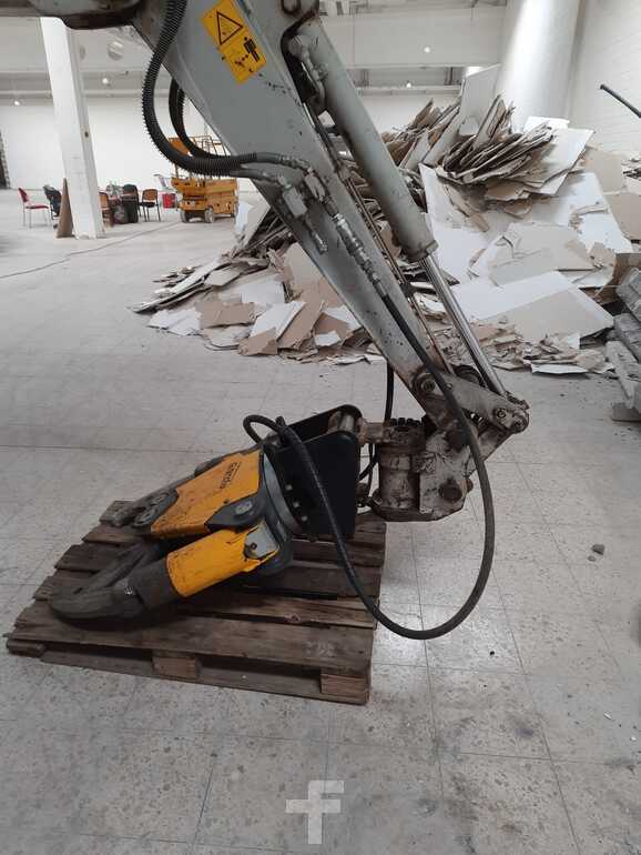 (Viestin käännös): Purkupihdit/betonimurskain CC440, 235kg ilman pidikettä, 440mm aukon leveys, 40-100 l/min, 17,5-25 MPa, työpaine 50 MPa, murtovoima A 431kN/44t, murtovoima B 568kN/581561tk leikkausvoima Ø 30 mm, kannatinlaite: 2,4 - 4,5 t, B170, B160, B180 valinnainen: pikavaihto Lehnhoff MS03 tai Brokk - 360° pyörivä käyttö - lisämurtohampaita