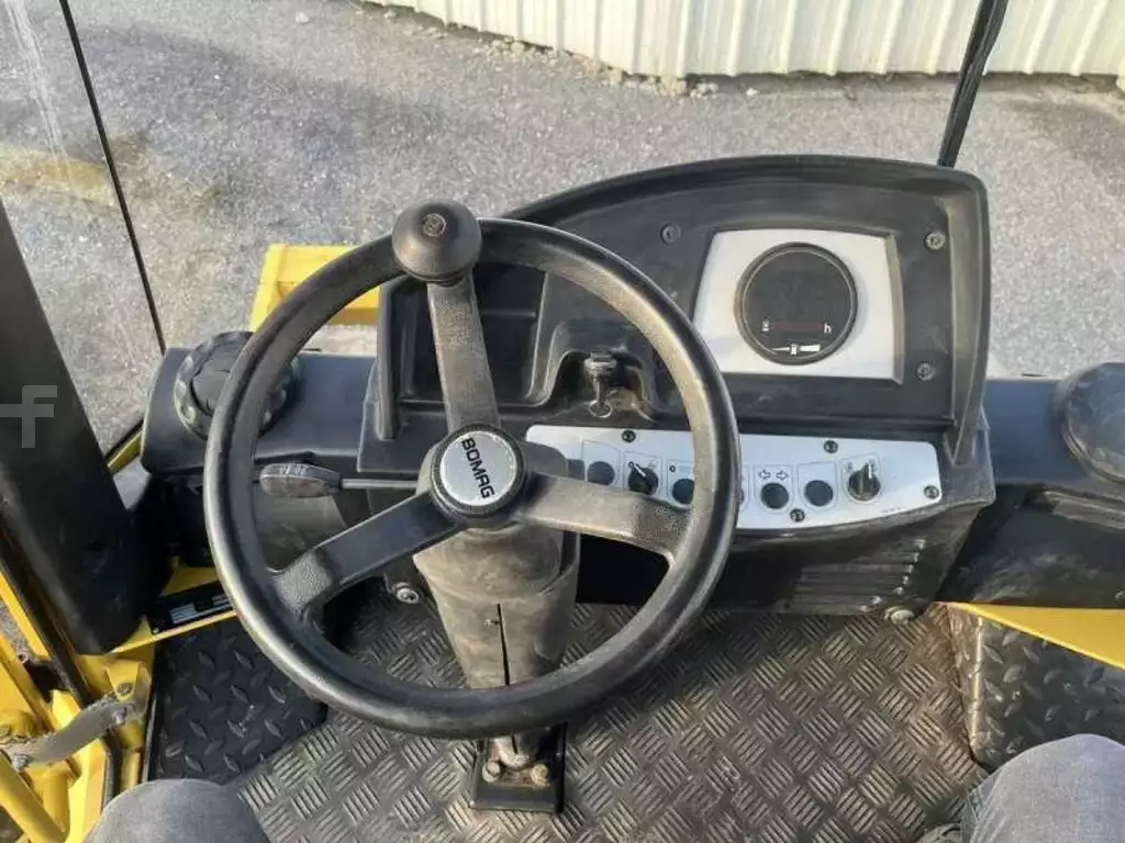 Ce compacteur bille et pneus de la marque Bomag est le modèle BW177 D-4 de 2006. Longueur : 4 M 85 Largeur : 1 M 84 Hauteur : 2 M 87 Poids : 6800 kg. Largeur bille : 1 M 69 Diamètre bille : 1 M 23 Taille pneus : 14.9 - 24 Fréquence de vibration : 40 Hz Charge de la ligne statique : 24.9 kg/cm Vitesse de déplacement : 11 km/h Moteur Deutz BF 4M 2011 de 56 kW (75 ch) 944 Heures