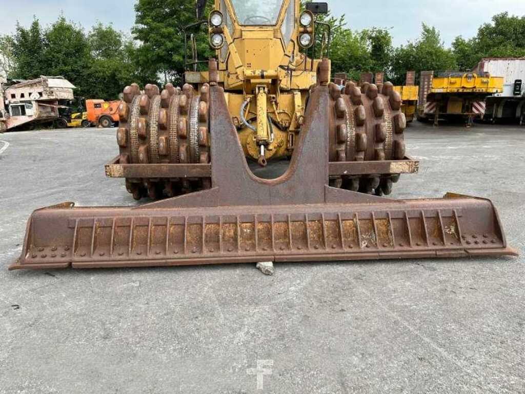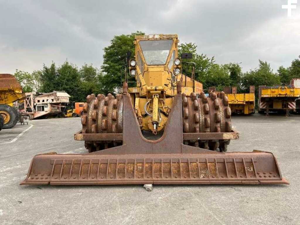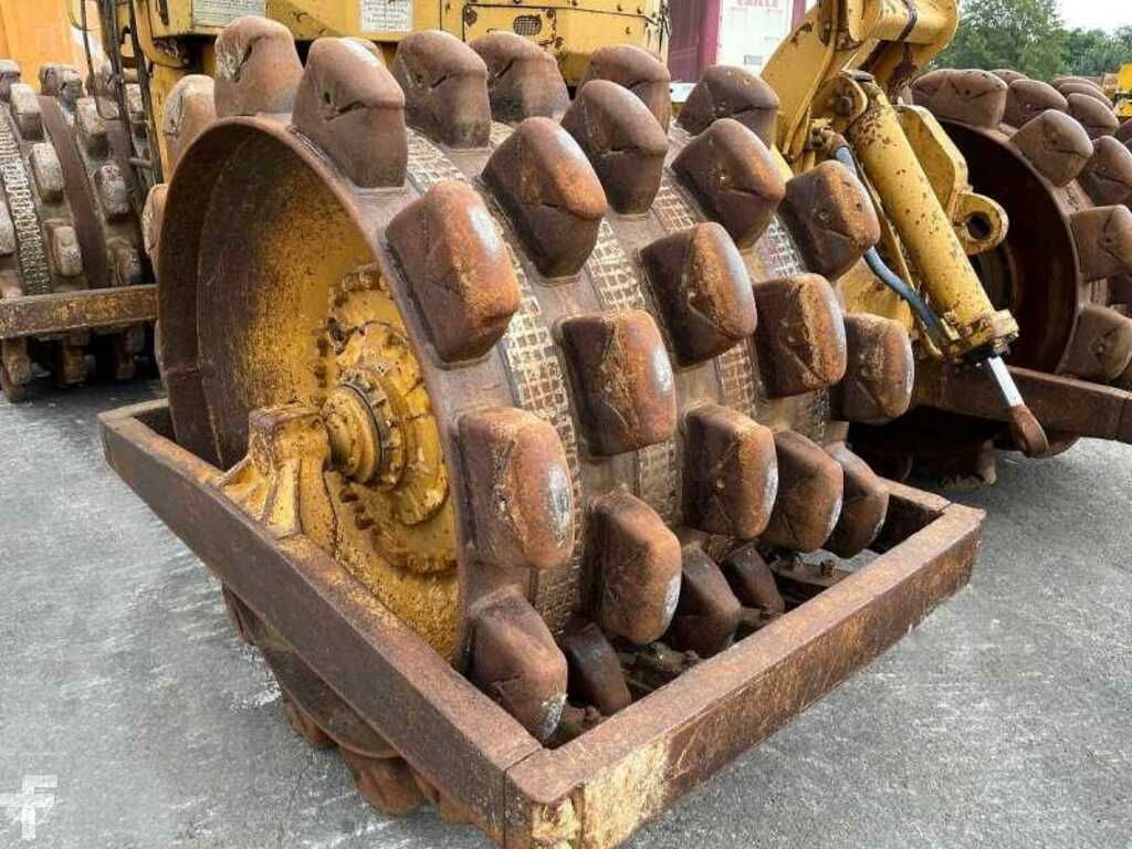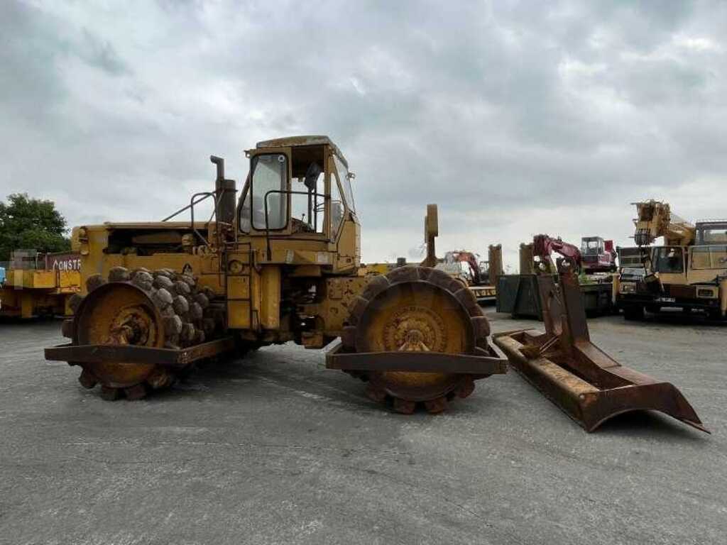 Ce compacteur à déchets pieds de mouton de la marque Caterpillar est le modèle 825 de 1978.