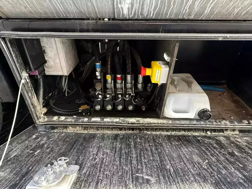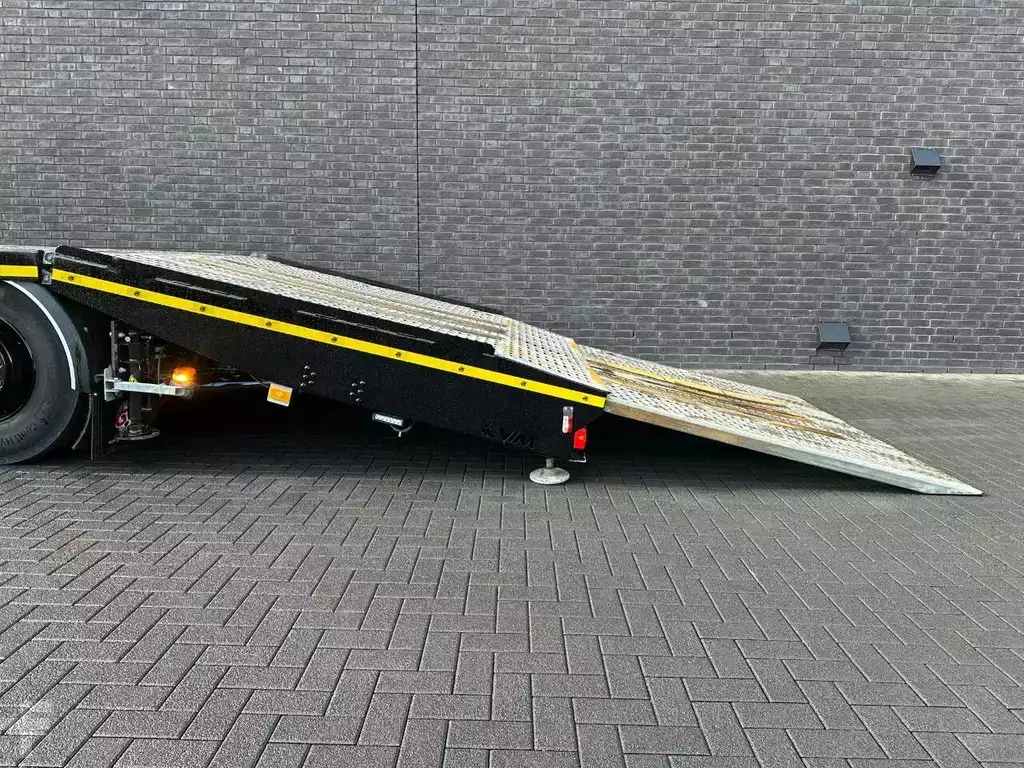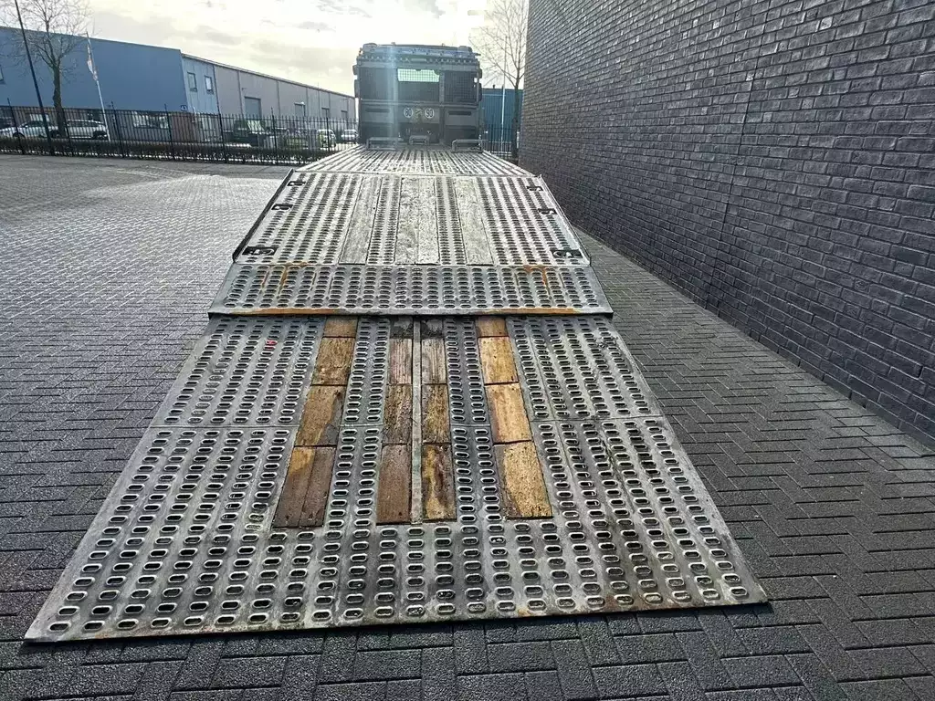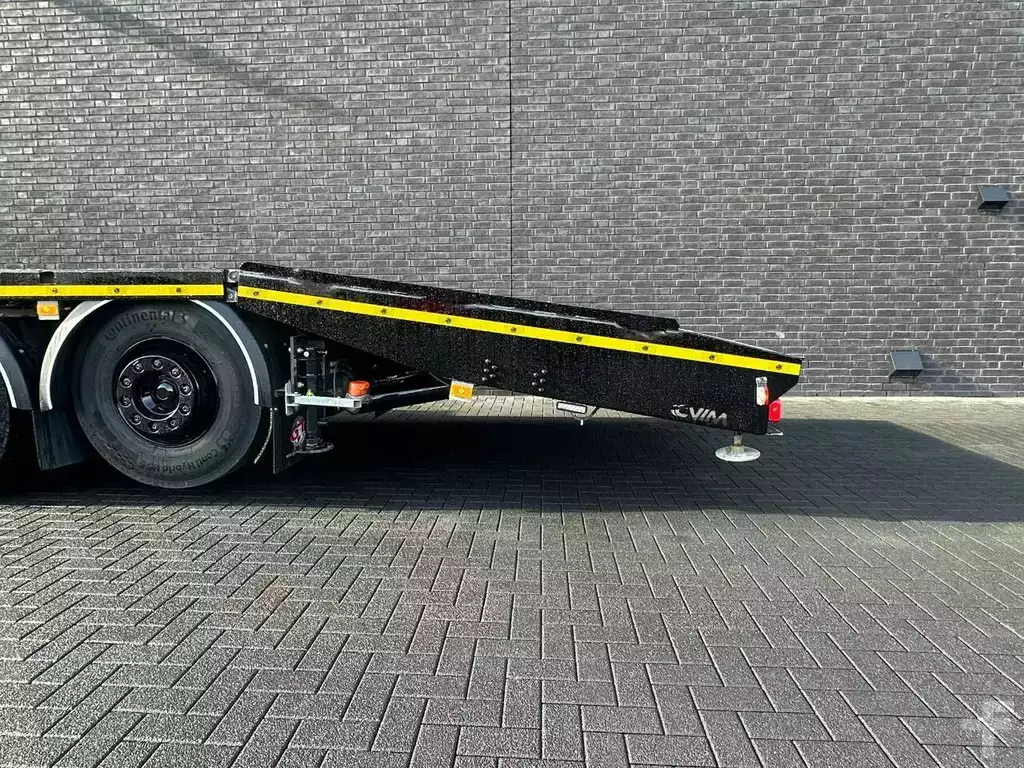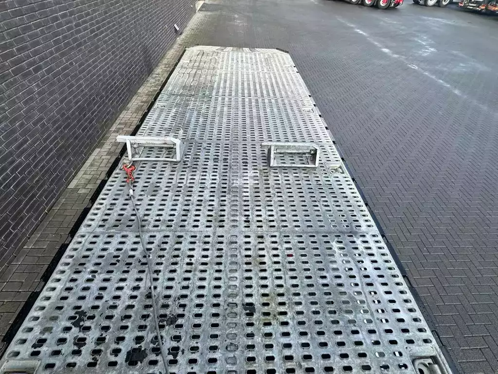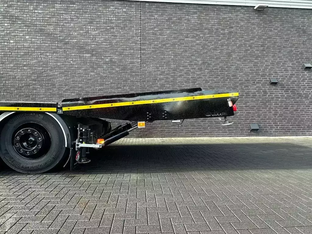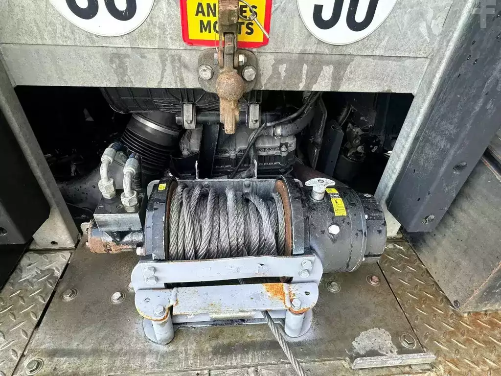 BEAVERTAIL LOADING PLATFORM LENGTH 960 CM LOADING FLOOR HEIGHT ± 120 CM HOOKEYES HYDRAULIC ADJUSTABLE RAMPS BIG WINCH WITH RADIO REMOTE CONTROL 2X STABILZERS AT THE BACK TOOLBOXES HYDAULIC BEAVERTAIL END