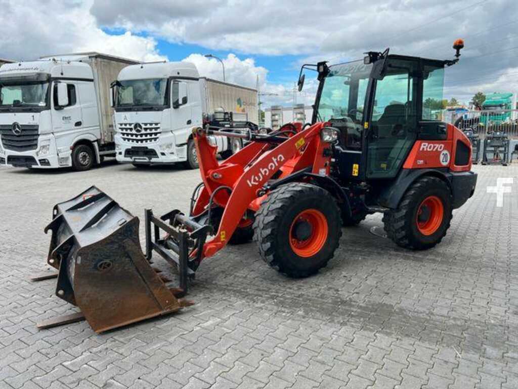 Kubota R070 Wheel chargeur, année de construction: 2022, heures de fonctionnement: seulement 1 869h!, Hydr. Changeur rapide, fourche de palette: 1 200 mm, pelle 1 890 mm, moteur: kubota [37,4 kW / 59ps], poids: 4 520 kg, véhicule allemand, bon état, immédiatement opérationnel,