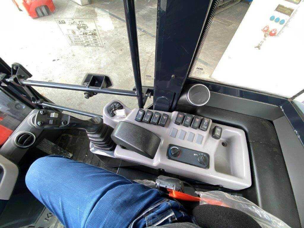 Deutsche Maschine aus 1.Hand Schnellwechsler Hydraulisch Schaufel 0.8m³ Palettengabel Bereifung 405/70 R18 (Breite 1.800mm)Betriebsgewicht: 5.020 kg Fahrgeschwindigkeit: 0-20 km/h Gesamtlänge: 5.485 mm Gesamthöhe: 2.480 mm Gesamtbreite: 1.725 mm 65PS Kubota Motor Stage V Kabine mit Heizung Multifunktions -Bedienhebel mit Proportionalsteuerung AUX Kombiniertes Inch und Bremspedal (links)Schwimmstellung mit Schalteraktivierung