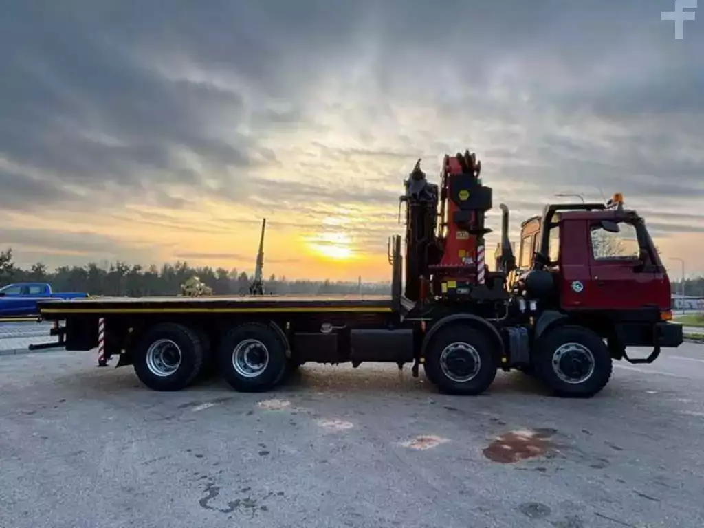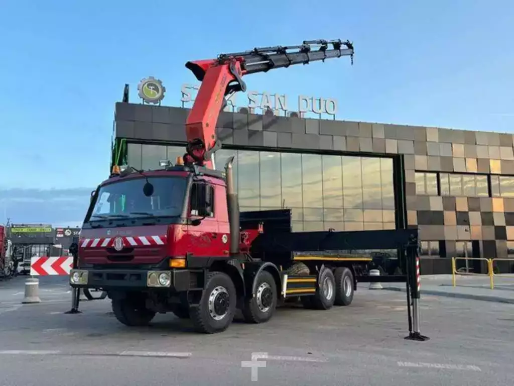 TATRA T815 8x8 PALFINGER PK 74002 ID No.: 977 ________________________________________ Vehicle Specifications: • Model: TATRA T815 • VIN: • Drive: 8x8 • Year of manufacture: 2007 • First registration: 04.2008 • Engine power: 380 HP • Emission standard: Euro V • Mileage: 251,000 km • Gearbox: manual ________________________________________ Crane Specifications: • Palfinger PK 74002 • 6 hydraulic lifts • Radio control ________________________________________ Technical Parameters: • Curb weight: ... kg • Permissible Gross Vehicle Weight (GVW) in Poland: 32,000 kg • Payload: ... kg ________________________________________ Cargo space dimensions: • Length: 5900 mm • Width: 2450 mm • Height: ... mm ________________________________________ Wheelbase: • Axle 1-2: 1650 mm • Axle 2-3: 3300 mm ________________________________________ Overall vehicle dimensions: • Overall length: 10400 mm • Overall height: 3900 mm ________________________________________ Additional equipment: • ABS • Central locking • CD player • Electric windows • Hook/Clutch • Immobilizer • On-board computer • Factory radio • Tachograph • Power steering ________________________________________ Services: • Authorized service for cranes from FASSI, HIAB, EFFER, and others • Repairs of all crane brands and trucks • Spare parts availability ________________________________________ Technical inspections and certificates: • We are authorized by the Office of Technical Inspection (UDT) • We carry out Inspection inspections and documentation coordination with the Office of Technical Inspection (UDT) • We conduct initial vehicle inspections at Diagnostic Stations ________________________________________ Warranty and preparation for operation: • Possibility to purchase a technical warranty for an additional fee • Professional preparation of the vehicle and crane for operation ________________________________________ Financing: We offer assistance in arranging leasing or a loan for the purchase of a vehicle – ask us for details. ________________________________________ Location: Our headquarters is in Starachowice. We invite you to inspect the vehicle in person and take a test drive. ________________________________________ Additional information: Why choose our offer? • Experience and professionalism: We have been selling and servicing 4x4, 6x6, and 8x8 off-road vehicles for years. • Comprehensive service: We provide support with vehicle purchase, financing, and servicing. • Quality guarantee: Each vehicle undergoes a detailed pre-sale inspection, guaranteeing its operational reliability and reliability. ________________________________________ You can find more offers on our sales platform: ... ________________________________________ Don't wait – contact us today and schedule a vehicle viewing! ________________________________________ Legal information: This announcement is for
