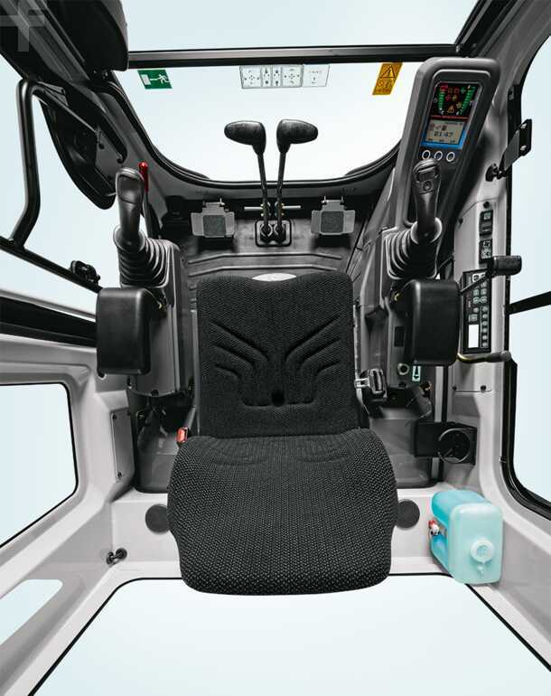 Minibagger mit Kabine und V0-Grundausstattung, Hammerbetrieb, mit Kettenverbreiterung, optional mechanischer Schnellwechsel für MS01, Tieflöffel und starre Grabenräumwanne 1000mm (Paketpreis 1600€), optional 3-Wege-Ventil für Erdbaugreiferbetrieb mit Sperrhahn vom Löffelzylinder kommend (1150€)