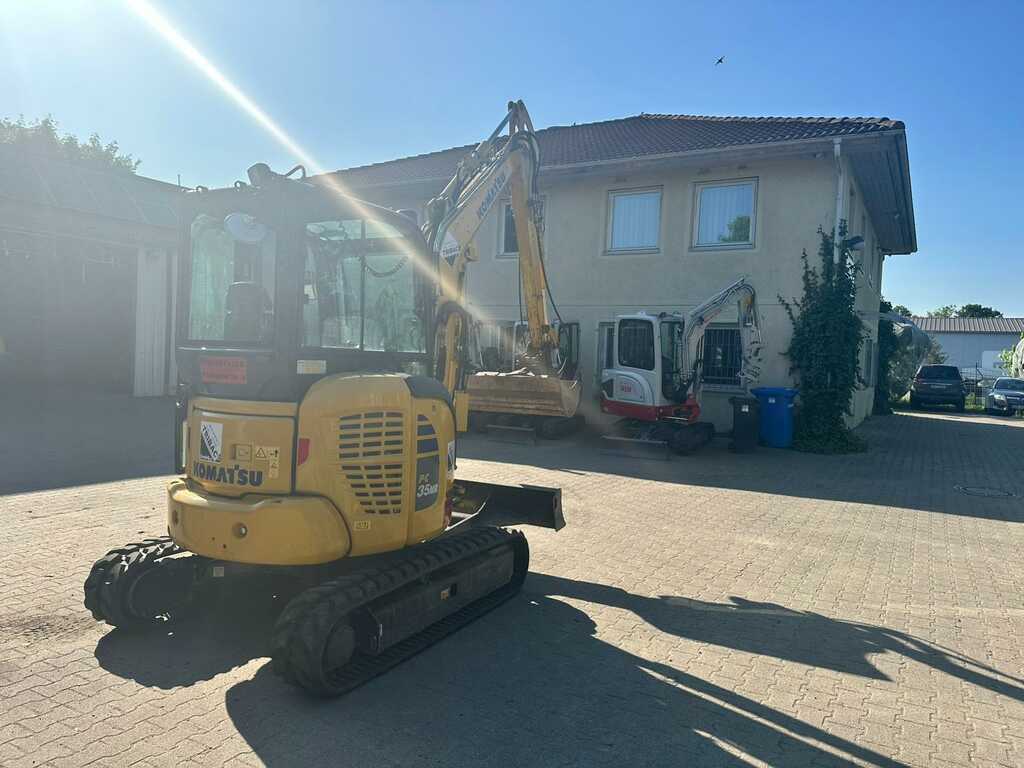 Hammerbetrieb, langer Stiel (1720mm), Komtrax, 3 Steuerkreise, davon 2 proportional, Abbruch- und Sortiergreifer möglich. Bei Arbeiten mit Erdbaugreifer kann der Löffelzylinder gesperrt werden. optional: Mechanischer Schnellwechsel Lehnhoff MS03, Tieflöffel 500mm, starre Grabenräumwanne 1200mm (Paketpreis 1.500€)