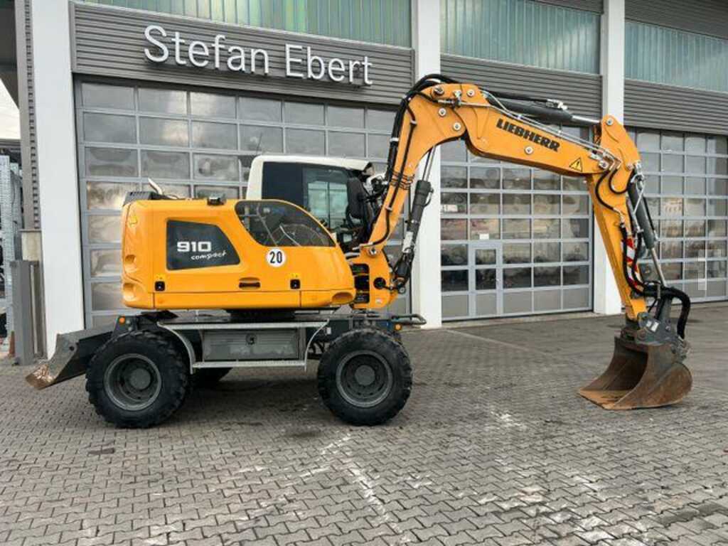 Liebherr A 910 C Litronic mobile excavator, year of manufacture: 2020, operating hours: only 2.381h!, adjustable boom, dozer blade, hydraulic quick coupler SW33 likufix, hammer/shear hydraulics, backhoe bucket 850 mm, engine: Deutz [95kW/127hp], 20km/ machine, weight: 12.500kg, German vehicle, first owner, good condition, ready for immediate use.