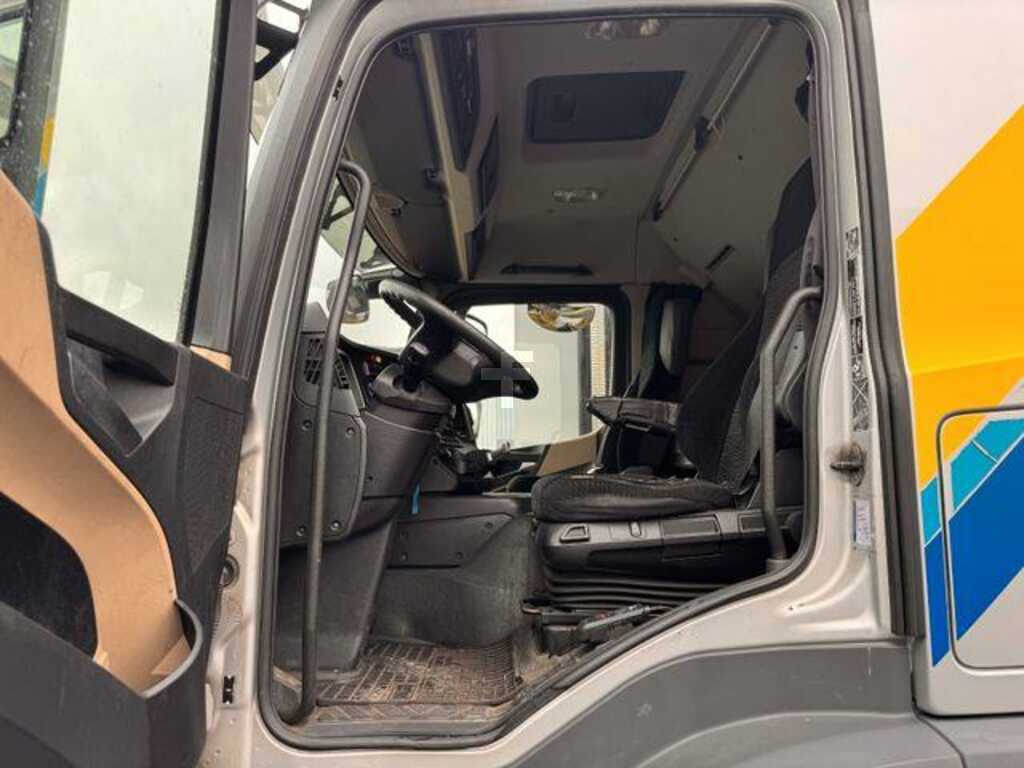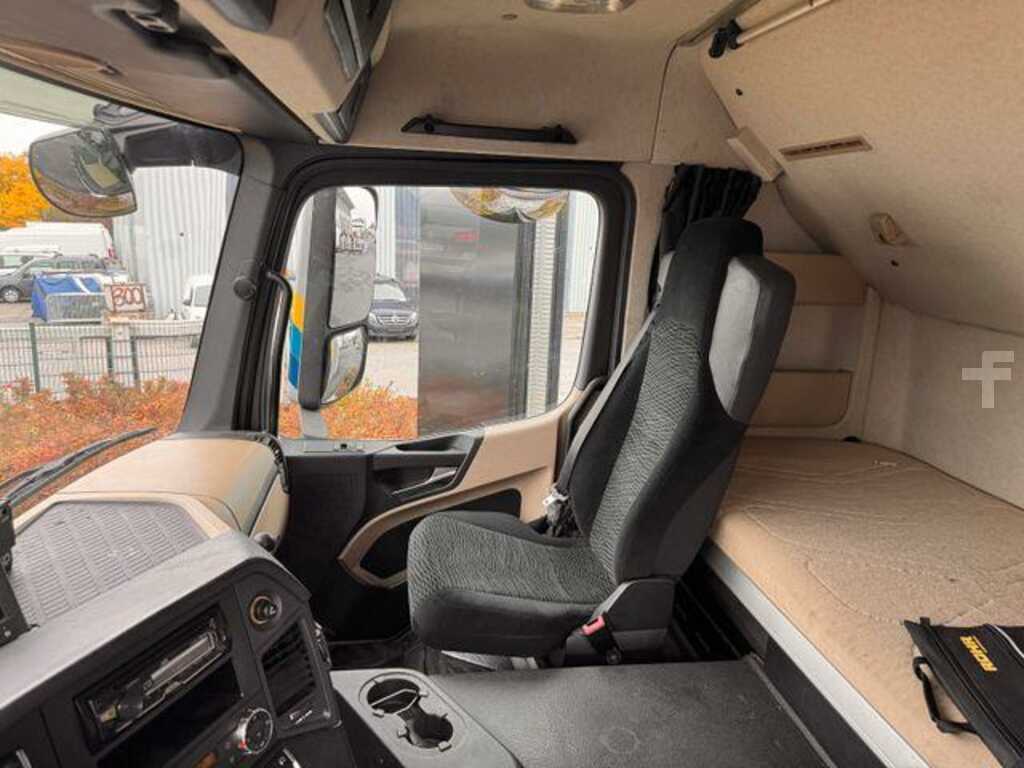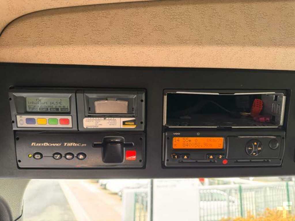 A1A Vorderachse luftgefedert, A1D Vorderachse 8,0 t, A1Z Vorderachse, gekröpfte Ausführung, A2E Hinterachse, Tellerrad 440, Hypoid, 13,0 t, A4Z Nachlaufachse, 7,5 t, entlastbar, liftbar, A5C Achsübersetzung i = 2,733, B1B Elektronisches Bremssystem mit ABS und ASR, B1E Elektronische Druckluftversorgungseinheit, hoch, B1F Heizung, elektronische Druckluftversorgungseinheit, B2A Scheibenbremse, an VA und HA, B4A Kondenswasserüberwachung, für Druckluftsystem, B4K Druckluftbehälter, Aluminium, nur für Bremsanlage, B5A Anhängerbremse, 2-Leitung, Bremsanschlüsse links, B5L Anhänger-Bremsanschluss hinten, Duo-Matic+Standard, C3B Radstand 5200 mm, C4F Rahmenüberhang 2250 mm, C5I Befestigungsteile, für Pritsche, C5P Rahmen verschraubt, C6C Lenkung, 1-Kreis, C6I Lenkhelfpumpe, geregelt, C6U Zusatzstabilisator, Hinter-/Nachlaufachse, C7F Frontunterfahrschutz (ECE), Aluminium, C7J Batterieträger, Batterien nebeneinander, C7S Freiraum am Rahmen, links, C8B Hinterachs-Kotflügel, 2550 mm Fahrzeugbreite, C8H Kotflügel 3-teilig, mit EG-Spritzschutz, C8I Spritzschutz (EG), vorne, C8Y Unterbodenverkleidung, aerodynamisch, C9Y Wegfall Heckunterfahrschutz (ECE), D0L Raucherpaket, D0S Druckluftanschluss, im Fahrerhaus, D1C Fahrer-Schwingsitz, Komfort, D1N Beifahrer-Funktionssitz, D2N Sitzlehne, Entriegelung, Fahrersitz, D3B Komfortbett, unten, D3Q Sitzbezug, Velours, Fahrersitz, D3T Sitzbezug, Velours, Beifahrersitz, Mittelsitz, D4T Vorhang, quer vor Bett(en), D6F Klimaanlage, D6I Restwärmenutzung, D6M Warmwasser-Zusatzheizung, Fahrerhaus, D7G Staufachdeckel, Fahrer- und Beifahrerseite, D7R Ablagenklappen, über Frontscheibe, D8A Dachluke/Lüftungsklappe Dach, E0D Batteriesensor, Fa. Hella, E1C Batterien 2 x 12 V/220 Ah, wartungsarm, E1M Generator 28 V/150 A, E3A Spannungswandler 24 V/12 V, 10 A, E3L Steckdose 24 V/15 A, Beifahrerfußraum, E4A Kommunikationsschnittstelle (KOM), E4C Zusatzfunktionen, für Aufbauhersteller, E4W Anfahrhilfe, Geschwindigkeitsbegrenzung 30 km/h, E5A Schalter Nr. 1 für Fremdaufbau-Elektrik, E6A Anhängersteckdose 24 V, 15-polig, E7F Kabelfernbedienung für Luftfederung, E9F Vorrüstung, 2. Bedieneinheit, Niveauregulierung, E9H Vorrüstung Steuerung Ladebordwand, E9I Vorrüstung Schalter, Liftachse, Auflieger/Anhänger, F0F Seitenmodul, N3 Fahrzeug, F0X Spiegelblende, Straßenfahrzeug, F1R L-Fahrerhaus, F1T L-Fahrerhaus ClassicSpace, 2,30 m, Tunnel 320 mm, F2C Bodenvariante, Tunnel 320 mm, F2G Fahrerhausbreite 2,30 m, F2M Fahrerhaus, 420 mm Aufsetzhöhe, F3B Fahrerhauslagerung, Komfort, stahlgefedert, F3W Fahrerhaus-Kippeinrichtung, mechanisch-hydraulisch, F4H Fahrerhausrückwand ohne Fenster, F4X Staufachaußenklappe, links, F4Y Staufachaußenklappe, rechts, F5L Sonnenblend