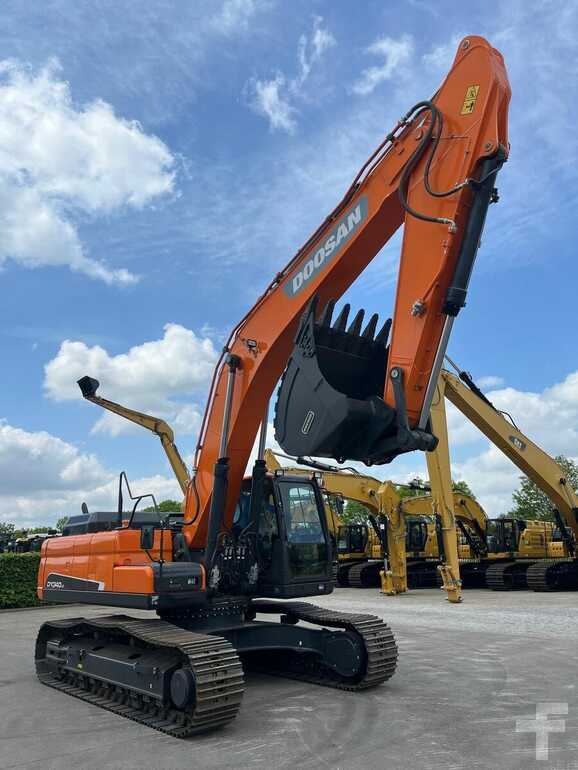 New Doosan DX340LC (2022) New and unused Rearview camera Extra hydraulic lines for hammer GP bucket with teeth EroPS cab with air conditioning Mono boom and arm Check valves 600 mm track shoes Air suspension operator's seat with seatbelt Radio-CD player Original color Working weight 35,600 kg Factory CE-certified Factory EPA-certified