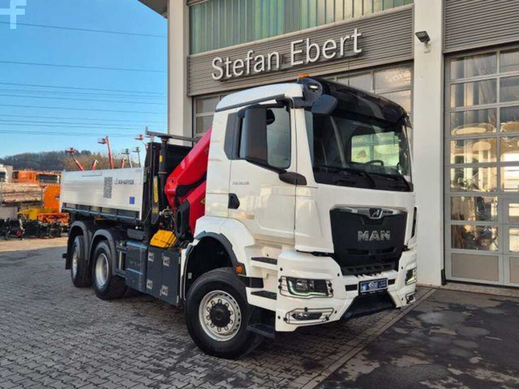 Gru: Palfinger PK 24.001 SLD D, radiocomando, supporto a 2 punti, ribaltabile trilaterale KH, gancio di traino, MAN Rio, cambio automatico, climatizzatore automatico, cruise control, bloccaggio differenziale, 3° asse sollevabile e molto altro.