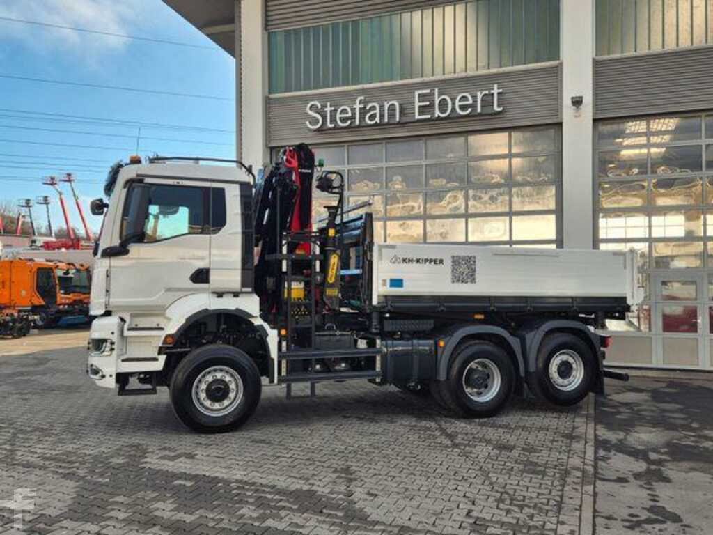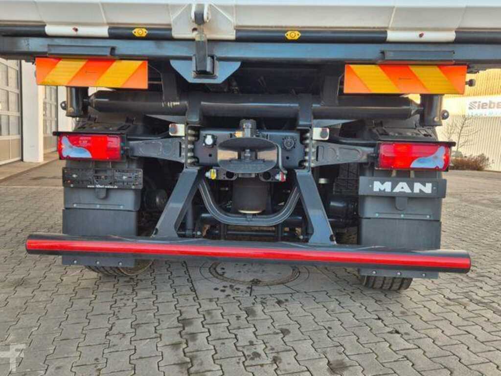 Gru: Palfinger PK 24.001 SLD D, radiocomando, supporto a 2 punti, ribaltabile trilaterale KH, gancio di traino, MAN Rio, cambio automatico, climatizzatore automatico, cruise control, bloccaggio differenziale, 3° asse sollevabile e molto altro.