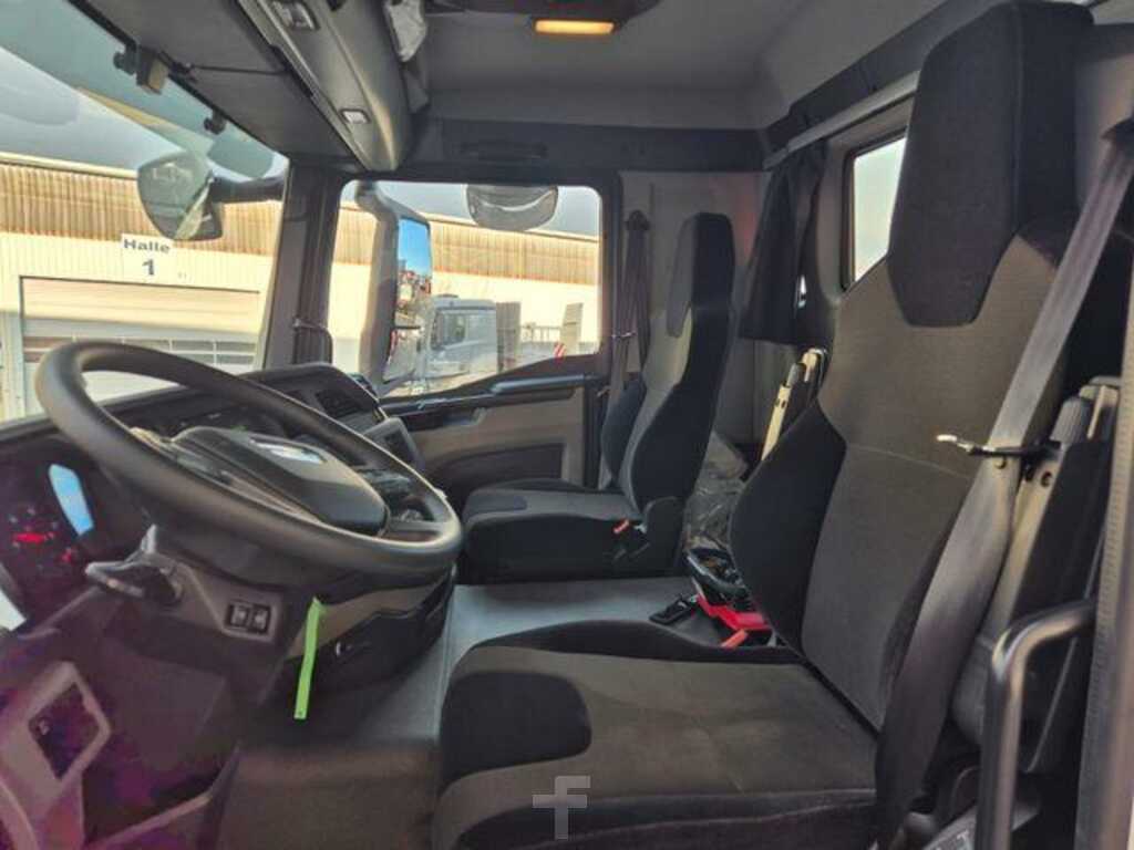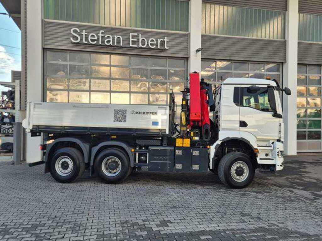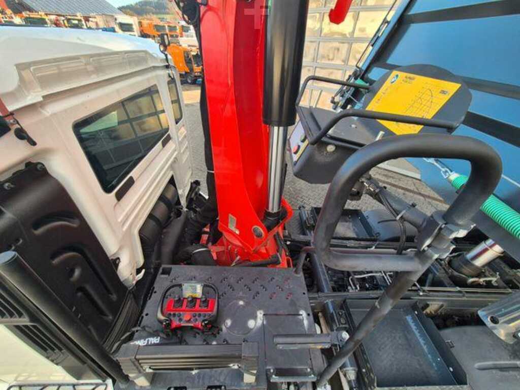 Kran: Palfinger PK 24.001 SLD D, Funkfernbedienung, 2 Punkt Abstützung, KH-Dreiseiten Kipper, Anhängerkupplung, MAN Rio, Automatik Getriebe, Klimaautomatik, Tempomat, Differentialsperre, 3. Achse liftbar, uvm.