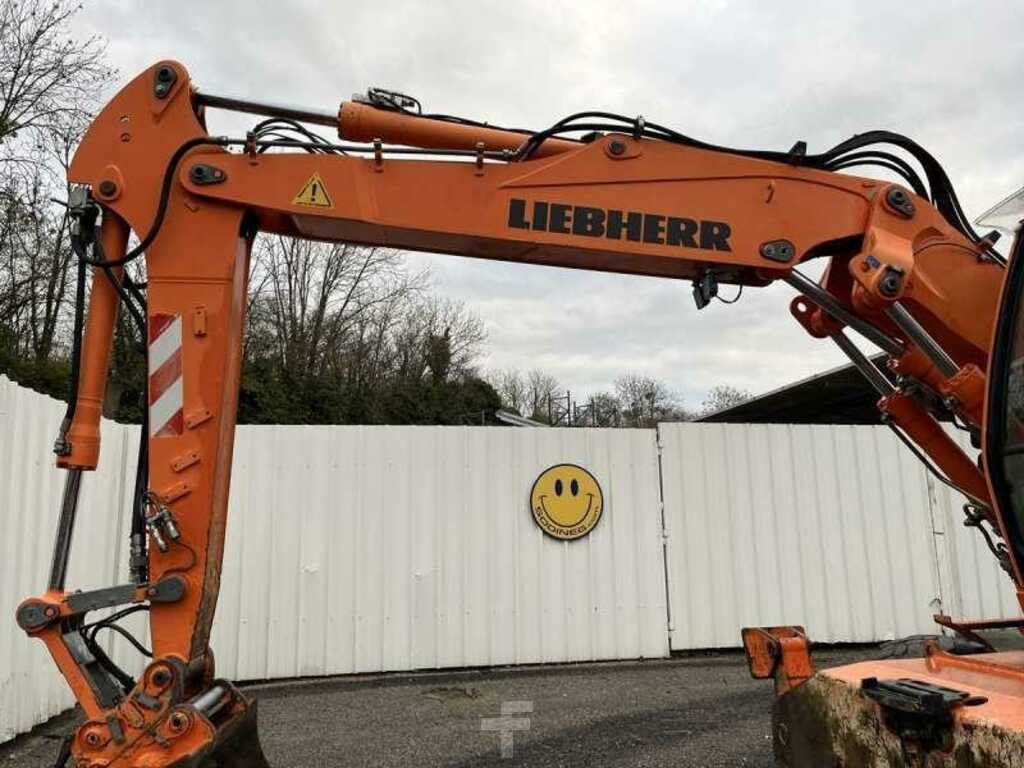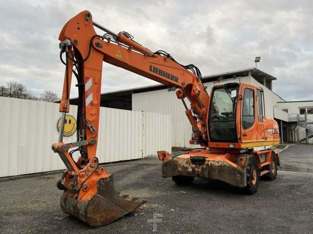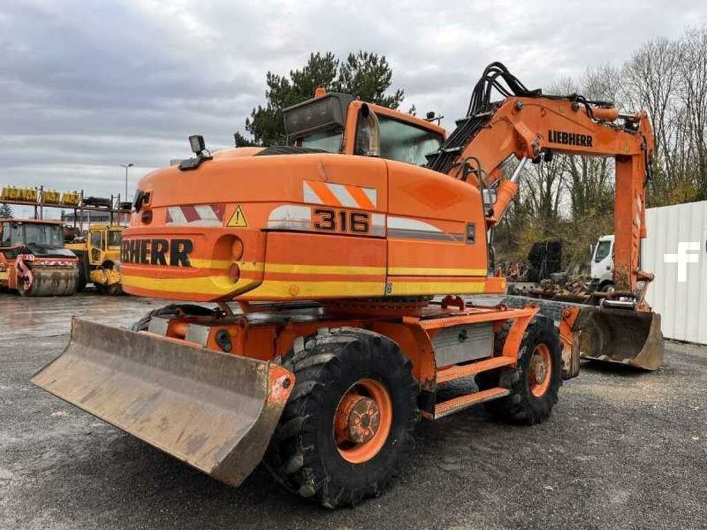 Cette pelle sur pneus de la marque Liebherr est le modèle A316 Litronic de 2010.