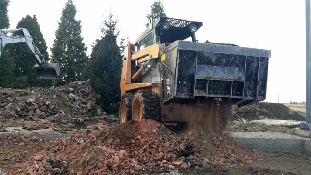 Brecherschaufel CB900, Empfohlenes Trägergerät: >= 900kg Betriebslast + Gewicht Standardschaufel, 1400mm Breite, 40-80l/min, 300bar Wellenbrecher für Kompakt-, Skid-, Rad- und Teleskoplader einschließlich: • Rotor/Welle mit austauschbaren Zähnen • Direktantrieb der Welle mittels Kolbenmotor • ausbaubare Schneiden für Stückgröße 0-70 mm • Aufnahme “ISO 24410” (Skid-Steer-Universalaufnahme) • Für Doppelwirkende Hydraulikkreisläufe mit Leckölleitung P+T+D (3Hydraulikleitungen) • Integriertes automatisches Umschaltventil