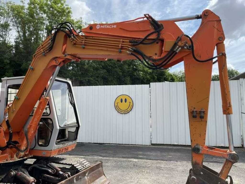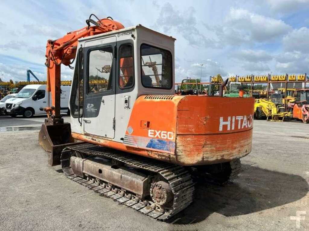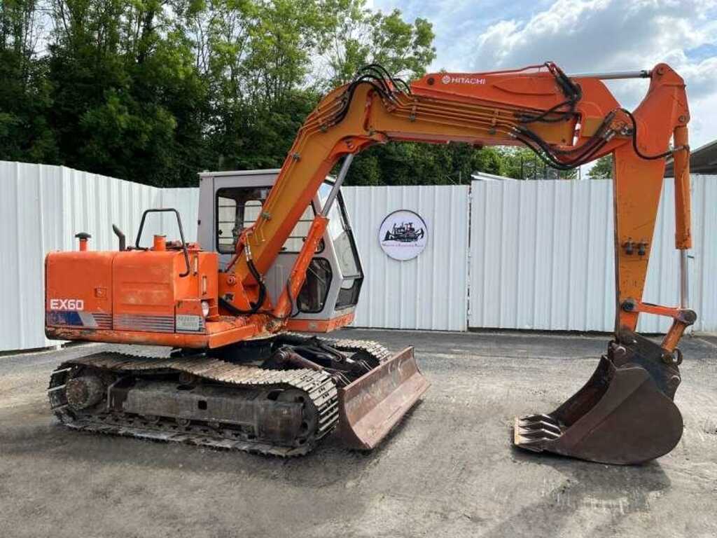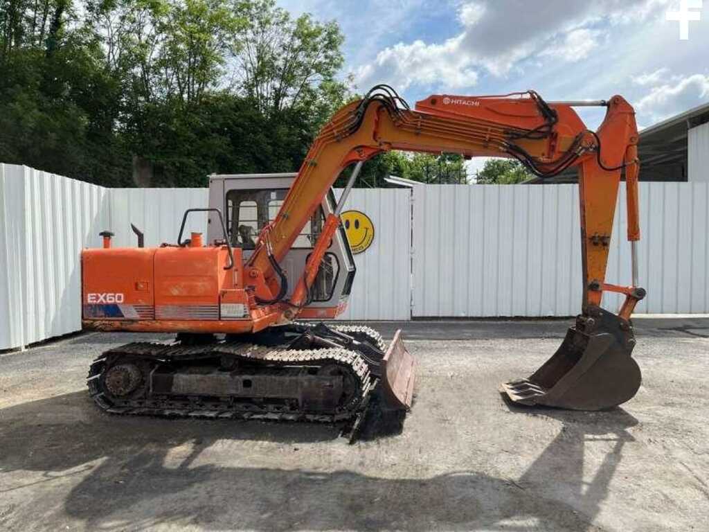 Cette pelle sur chenilles de la marque Hitachi est le modèle EX60 de 1990.