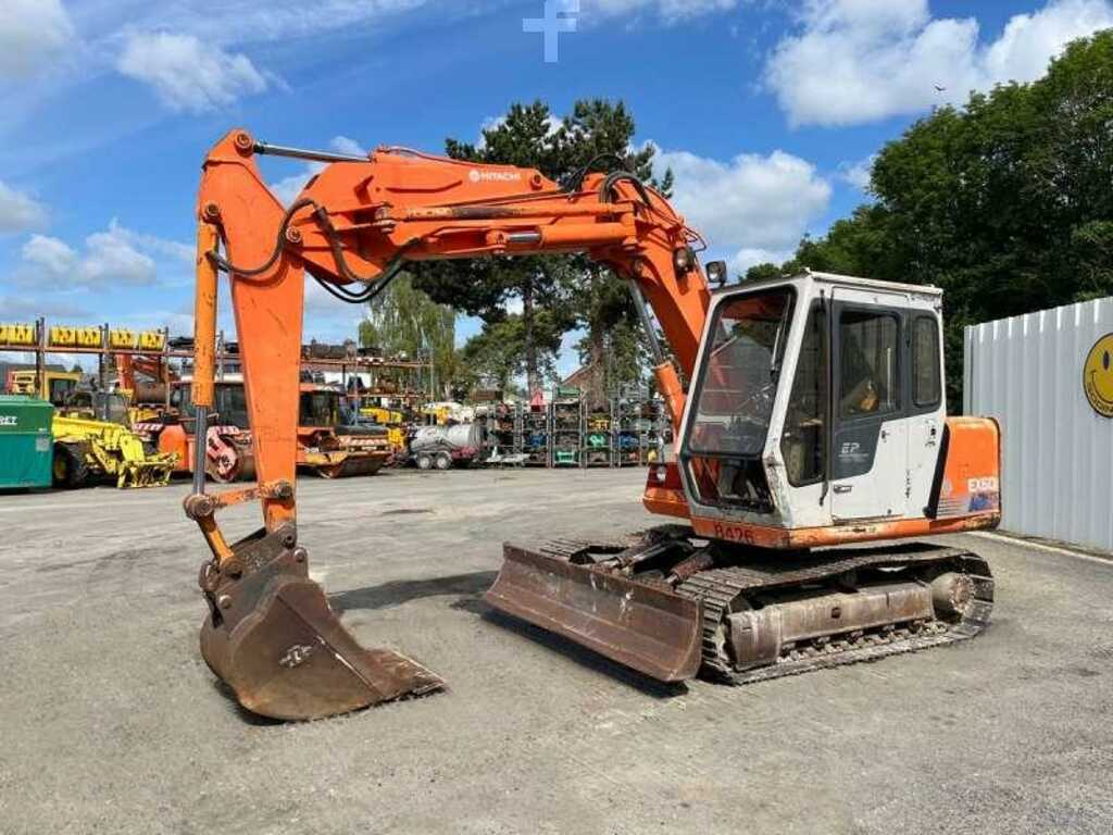Deze rupsgraafmachine van het merk Hitachi is het EX60-model uit 1990.