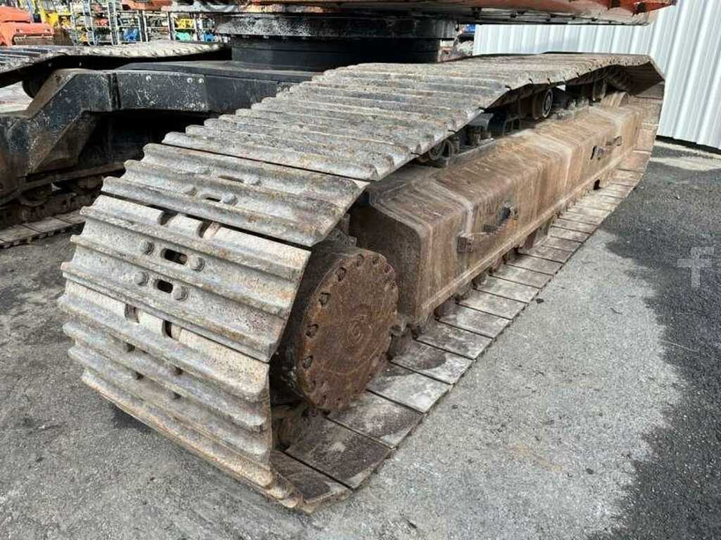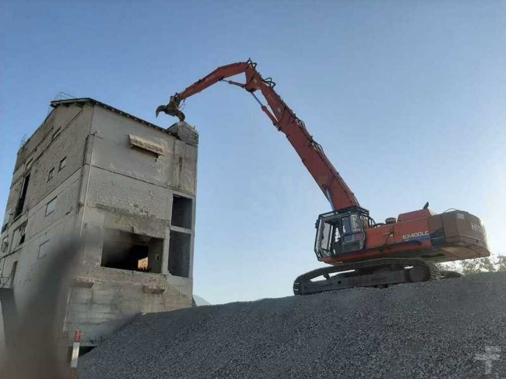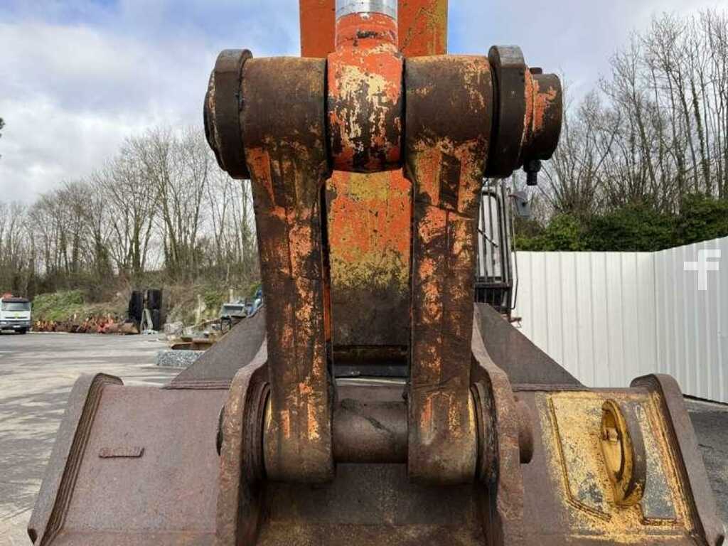 Cette pelle de démolition de la marque Hitachi est le modèle EX400LC de 1990.