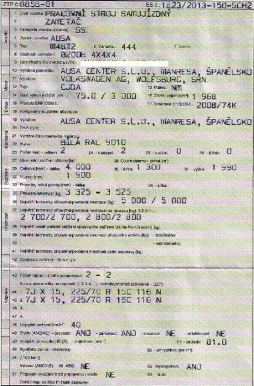 Provoz na silnici jako kategorie SS - TP stavební stroj.