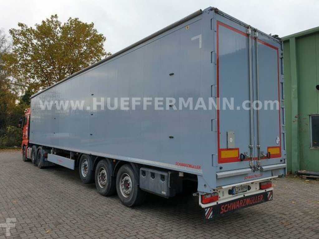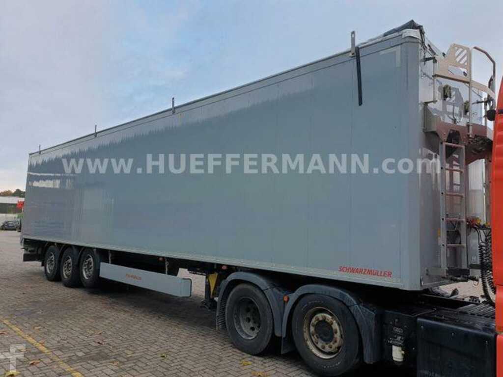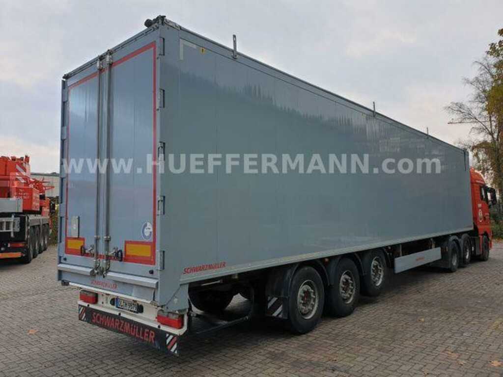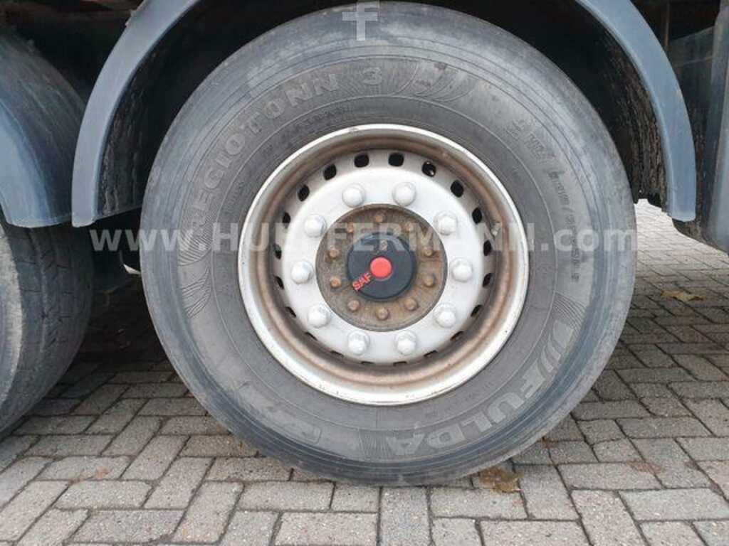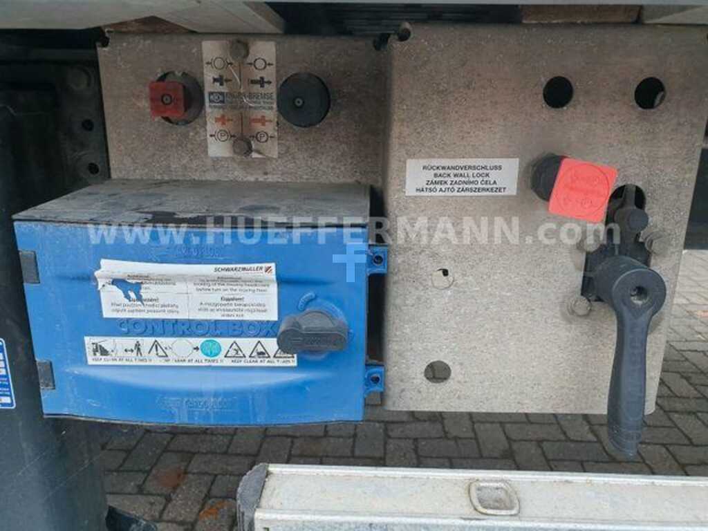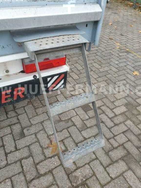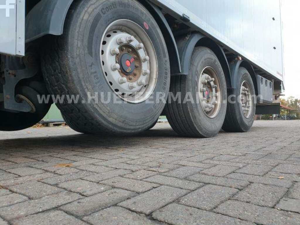 ABS, EBS, RSS, 3x 9 til. (SAF) aksler, luftfjæring, skivebremser, armerte aksellegemer, terrengversjon; Akselheis til 1. Aks, løfter automatisk og senker vektavhengig, når aksen løftes, øker belastningen eller den totale høyden med ca. 50mm; Mekanisk stålstøtte vikler 2x12t, akselbelastning via EBS-Canbus-signal, hydraulisk glidende aluminiumsprofilgulv "lastegulv", skyv lengde 200 mm, gulvprofil 10mm glatt, drift med mobiltelefon app, 13 par 2T gulv/flukt, aluminium-hollow profil partisjon, 3 stykker svivende/flyttbar kryssfryt-sne-sne-piec-pinne fra fronten. 4300mm/ca. 4300mm/ca. 4.300mm, plastrulle-tarpaulin i armert design (900 g/m²), aluminium dobbeltdør på baksiden, pneumatisk ekstra låsing for bakdører, plaststauca, lukket, 2x7-pinners stikkontakt, 1x15-polet stikkontakt, 2 LED-arbeidslykter, A-skjold