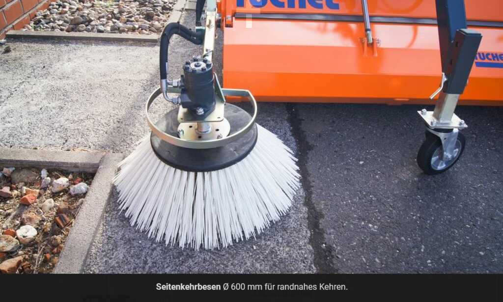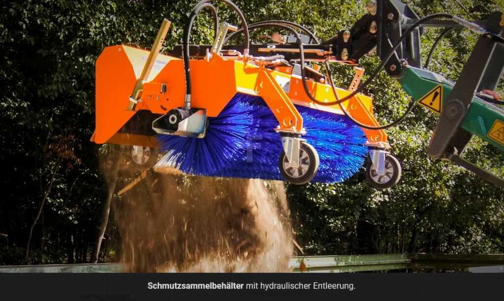 (Meldingsoversettelse): Tuchel-Sweep Eco Pro, Front-dyrking, hydraulisk, kraftig ekstern hydraulisk motor til venstre, grunnmaskinens arbeidsbredde 150 cm, børster ø 520 mm 100% pp snøopptak rulle, forlengelse via bonde eller hjullasteropptak. Reviating, med parkeringsstøtter, sprutbeskyttelse gummihåndkle 25 cm lang, sidejustering av feieren mekanisk, 3. støttehjul for jevn jordguide (lang versjon), styringsruller for normal bruk ø 200x50 mm, maleri av RAL 2004 sweeper), maling av dyrkningskomponentene RAL 7016 (Anthracite grå), inffiv av dyrkningskomponentene RAL 7016 (Anthracite. Hydr. Skattesirkler bærer kjøretøy 1 x enkel
