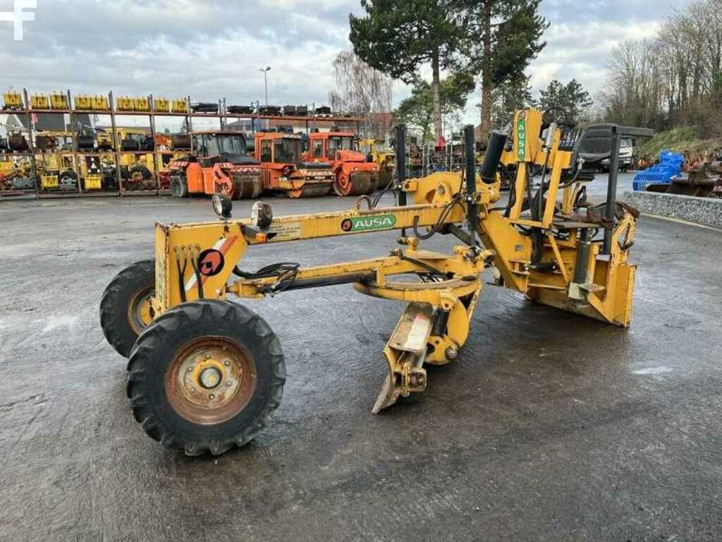 Cette niveleuse de la marque Ausa est le modèle OP NV2500 de 1992. Longueur : 4 M 15 Largeur : 1 M 65 Hauteur : 1 M 90 Largeur : 2 M 50 Poids : 1576 kg. Largeur lame hydraulique : 2 M 52 Adaptable sur chargeuse Bobcat entre 5 et 12 tonnes. Pas de compteur
