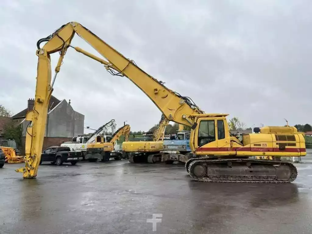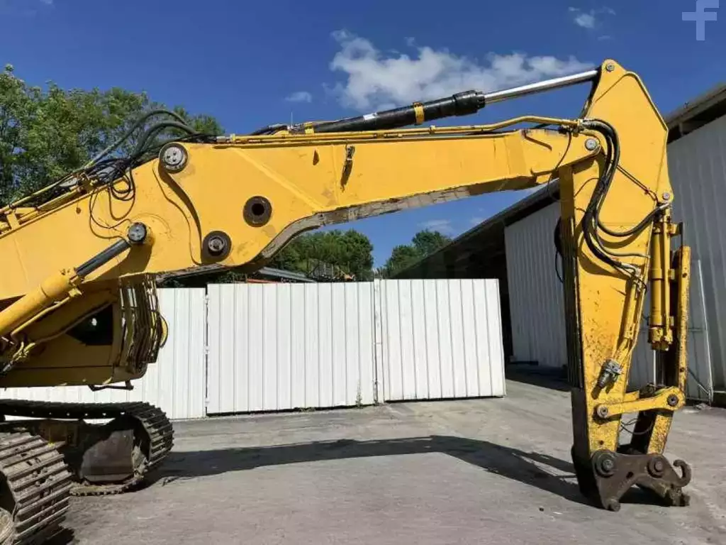 Cette pelle de démolition de la marque Caterpillar est le modèle 330D L de 2008. Longueur : 15 M 55 Largeur : 3 M 35 Hauteur : 3 M 35 Poids : 35 T. Largeur chenilles : 750 MM Bras de terrassement : 10 M 70 Bras de démolition : 17 M 05 Protections de vérins Clapets de sécurité Graissage centralisé Caméra de recul Lignes supplémentaires Protections de cabine Climatisation Moteur Caterpillar REMAN C-9 de 200 kW (272 ch) 18.167 Heures