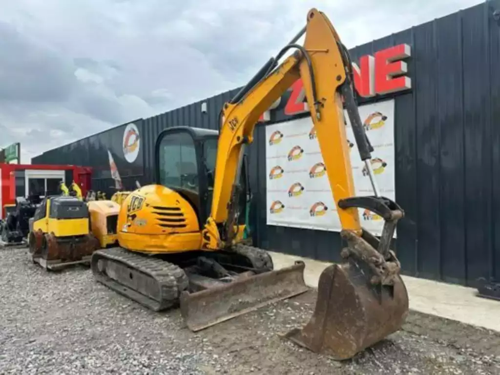 Mini Pelle JCB Version 8055 Poids : 5T5 Année modèle : 2010 Balancier long Déport de pied de fleche Chenilles caoutchouc Ligne BRH Attache rapide JCB à reprise d'axes Vendue avec 3 godets ( curage tranchée et terrassement ) Feu de travail Lame bull Tarif vendu dans l’état : 18 500 € H.T Tarif vendu révisé moteur vidangé filtres remplacés et garantie : 19 900€ HT TVA Récupérable Photos supplémentaires sur simple demande Plusieurs modèles identiques en stock Reprise possible de votre ancien matériel de TP - Minipelle telle que Kubota - Yanmar - Bobcat - Takeuchi - Caterpillar - JCB - Komatsu - Hitachi - Volvo - Kobelco - Cat - 4T5 - 5T - 6T Livraison possible France Corse Europe
