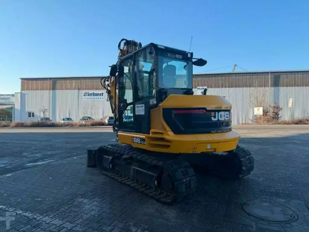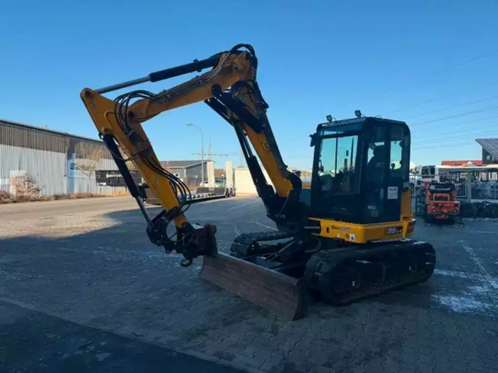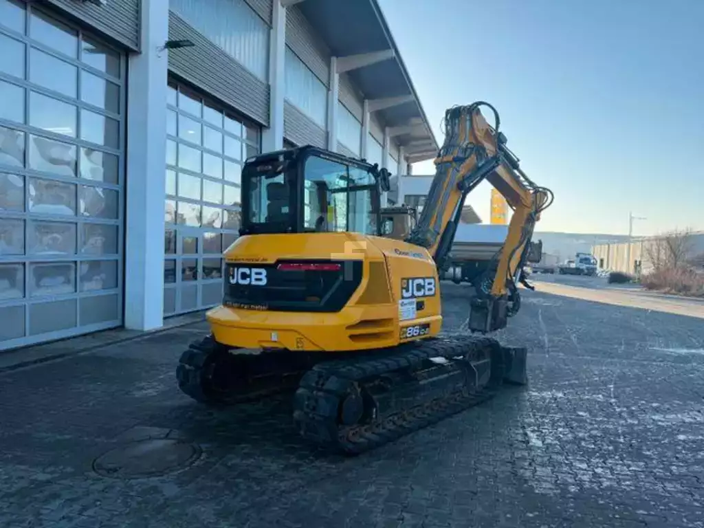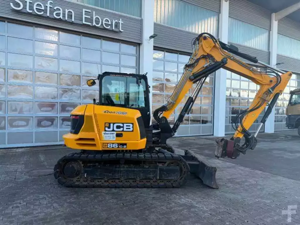 JCB 86C-2 T minigraver, byggeår: 08-2022, driftstimer: kun 627t!, komfortkabin ROPS/TOPS, tørke-/vaskesystem, varme, LC-fargedisplay, låsbar verktøykasse i interiøret, 12V-uttak, USB-medieuttak, radio, hammer-/svingskjærer
