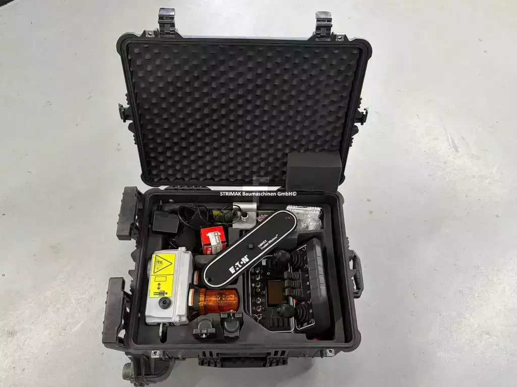Zakres dostawy: - Walizka transportowa (na kółkach) - Pilot radiowy z powiązanym paskiem - Odbiornik z wyłącznikiem awaryjnym - Bateria - Kabel do ładowania + różne wtyczki - Instrukcje obsługi