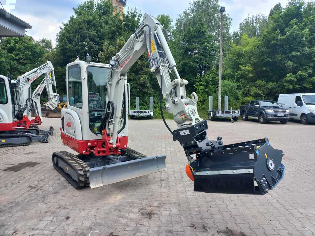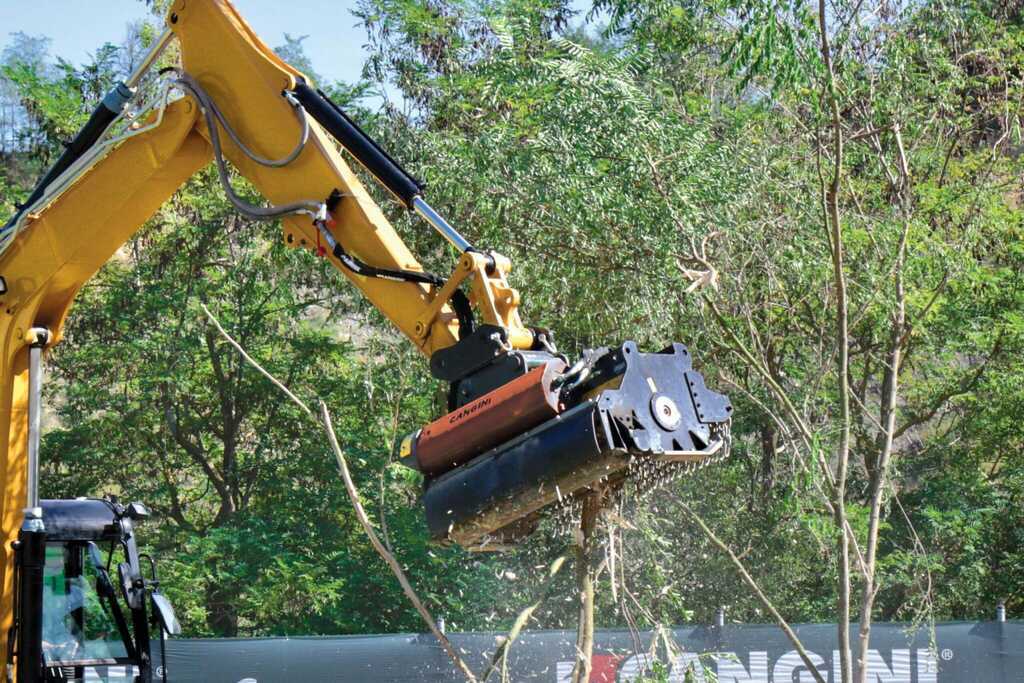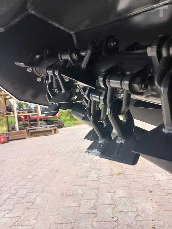 (Translação da mensagem): High-performance mulcher for excavators with MS03 with reinforced housing, protected storage and support roller, with overpressure and crop valve, 115kg weight without cultivation plate, width 1000mm, working width 800mm, 18-90 l/min, max 250 bar, up to 10 bar back pressure is no leakage line necessary, 40mm Ø with flail, shaft with grass, mulcht, grass, grass, Bushes, branches and Tribos) ou alternativamente eixo com miniários Y (grama mulcht, arbustos, arroz, galhos), dispositivo transportador: 1,5-4.5T, TB225
