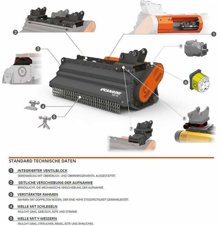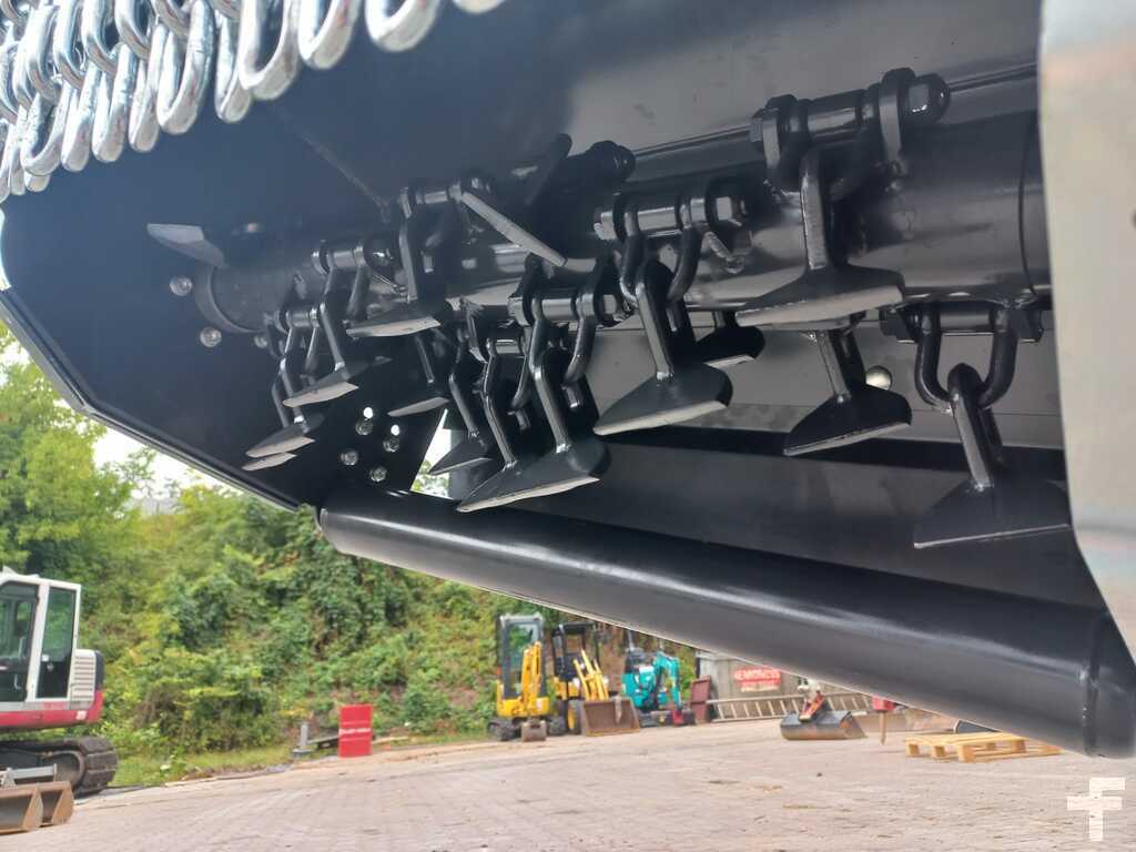 Hochleistungsmulcher für Bagger mit MS03 mit verstärktem Gehäuse, geschützten Lagern und Stützwalze, mit Überdruck- und Übermengenventil, 115kg Gewicht ohne Anbauplatte, Breite 1000mm, Arbeitsbreite 800mm, 18-90 L/min, max 250 bar, bis 10 bar Rücklaufdruck ist keine Leckölleitung notwendig, 40mm Ø mit Schlegeln, Welle mit Schlegeln (mulcht Gras, Gebüsch, Äste und Stämme) oder alternativ Welle mit Y-Messern (mulcht Gras, Sträucher, Reisig, Äste), Trägergerät: 1,5-4,5t, TB225