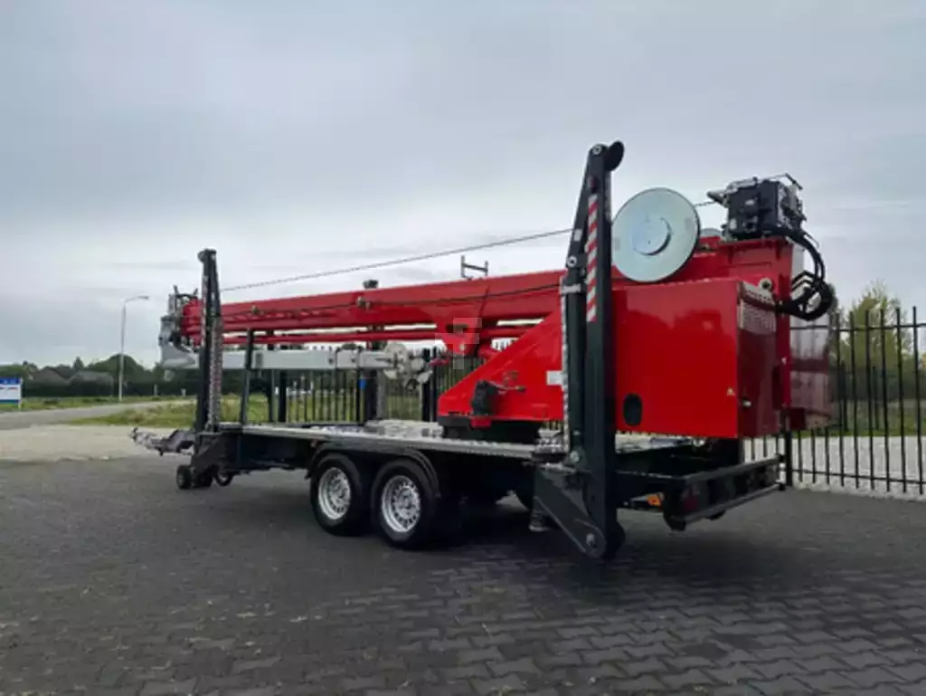 🇳🇱: Guindaste de reboque Böcker AHK 30/1500 KS ano de construção 2017 com 1.890 horas do primeiro proprietário. A máquina está em bom estado e tem entre outras coisas: motor Honda a gasolina, tração nas rodas com controle remoto, nivelamento automático, hidraulicamente...
